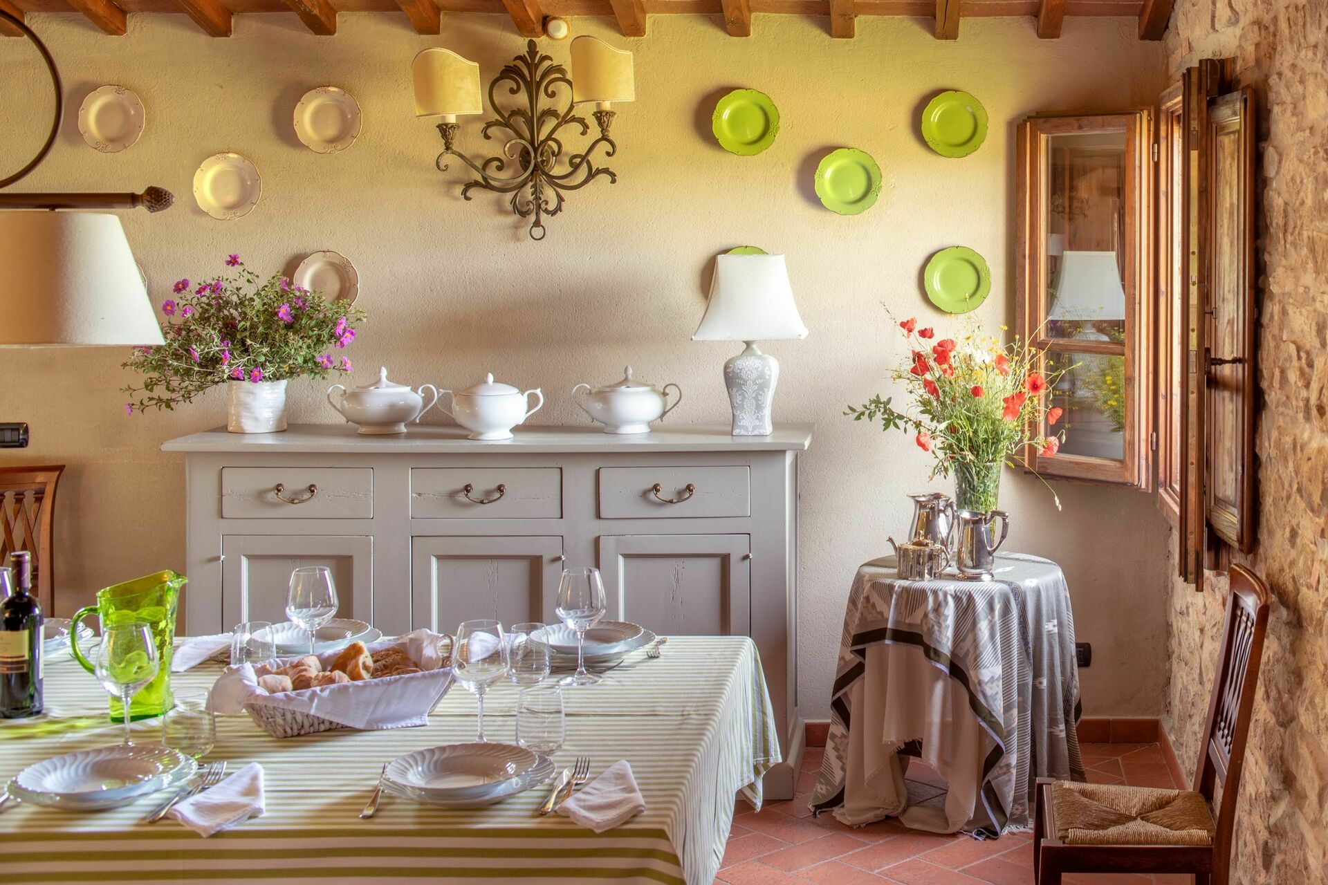 La casa, che dispone di 9 camere e 9 bagni, è stata ristrutturata con gusto mantenendo il suo fascino originale senza però rinunciare ai moderni comfort. Tutte le camere sono arredate in modo confortevole con tipici pavimenti in cotto, soffitti con travi a vista e televisione satellitare.