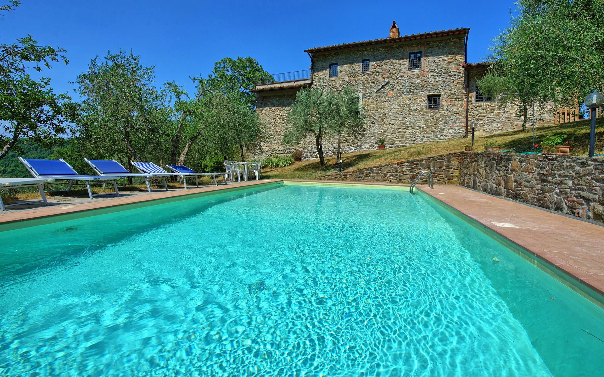 Bella casa colonica in pietra situata in posizione di assoluta tranquillità sulle colline del Chianti Classico. La casa è stata ristrutturata lasciando inalterate le sue caratteristiche architettoniche originarie ed è stata trasformata in una confortevole abitazione di campagna con piscina privata. La proprietà, con una bellissima vista sui vigneti e gli oliveti circostanti e sulla vicina Firenze, offre la possibilità di un soggiorno a stretto contatto con la natura, lontano dai rumori della città. L’arredamento è in stile rustico tipico toscano.