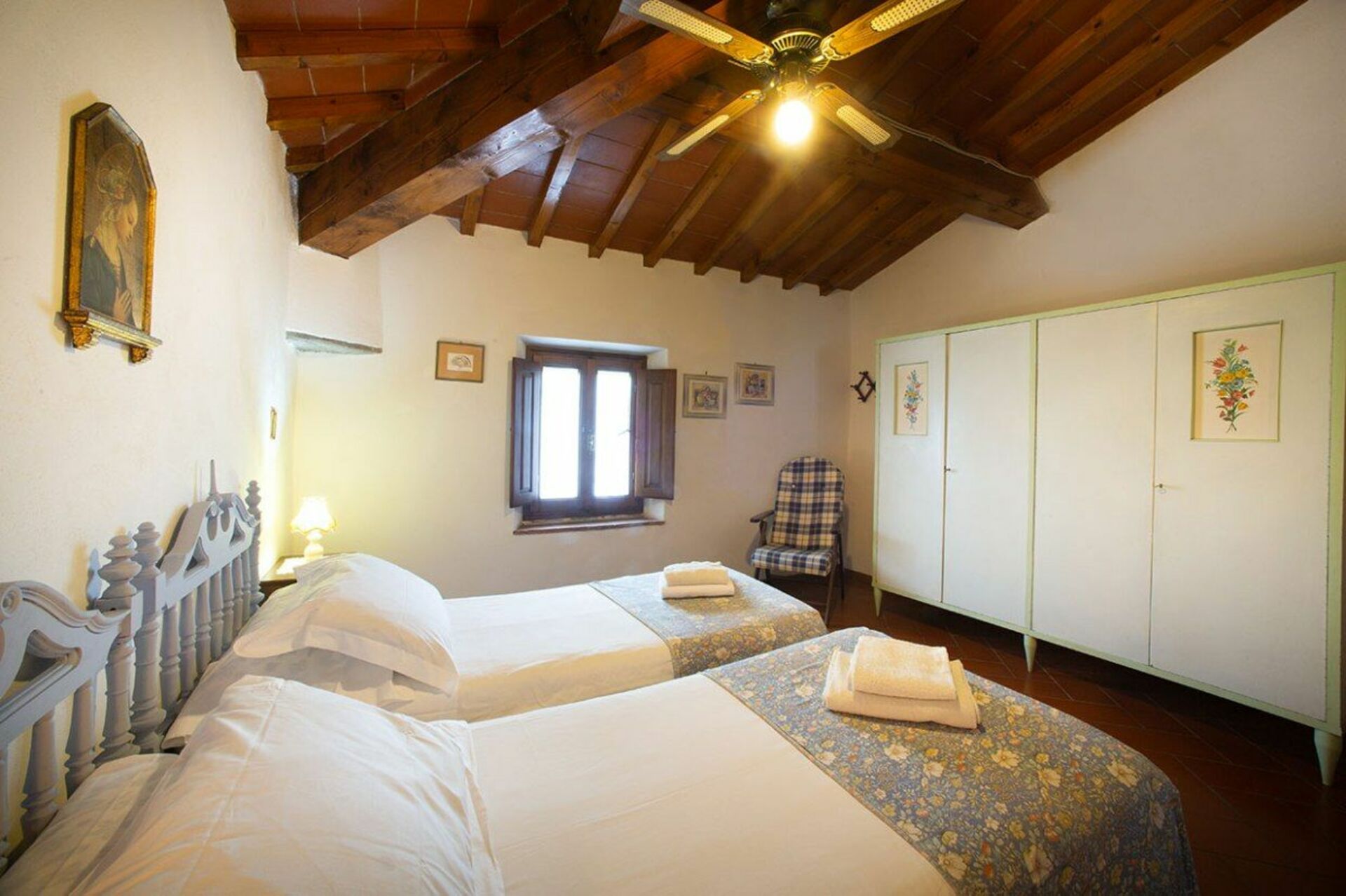 Primo piano: camera matrimoniale, 2 camere ognuna con due letti singoli (unibili su richiesta), bagno doccia.