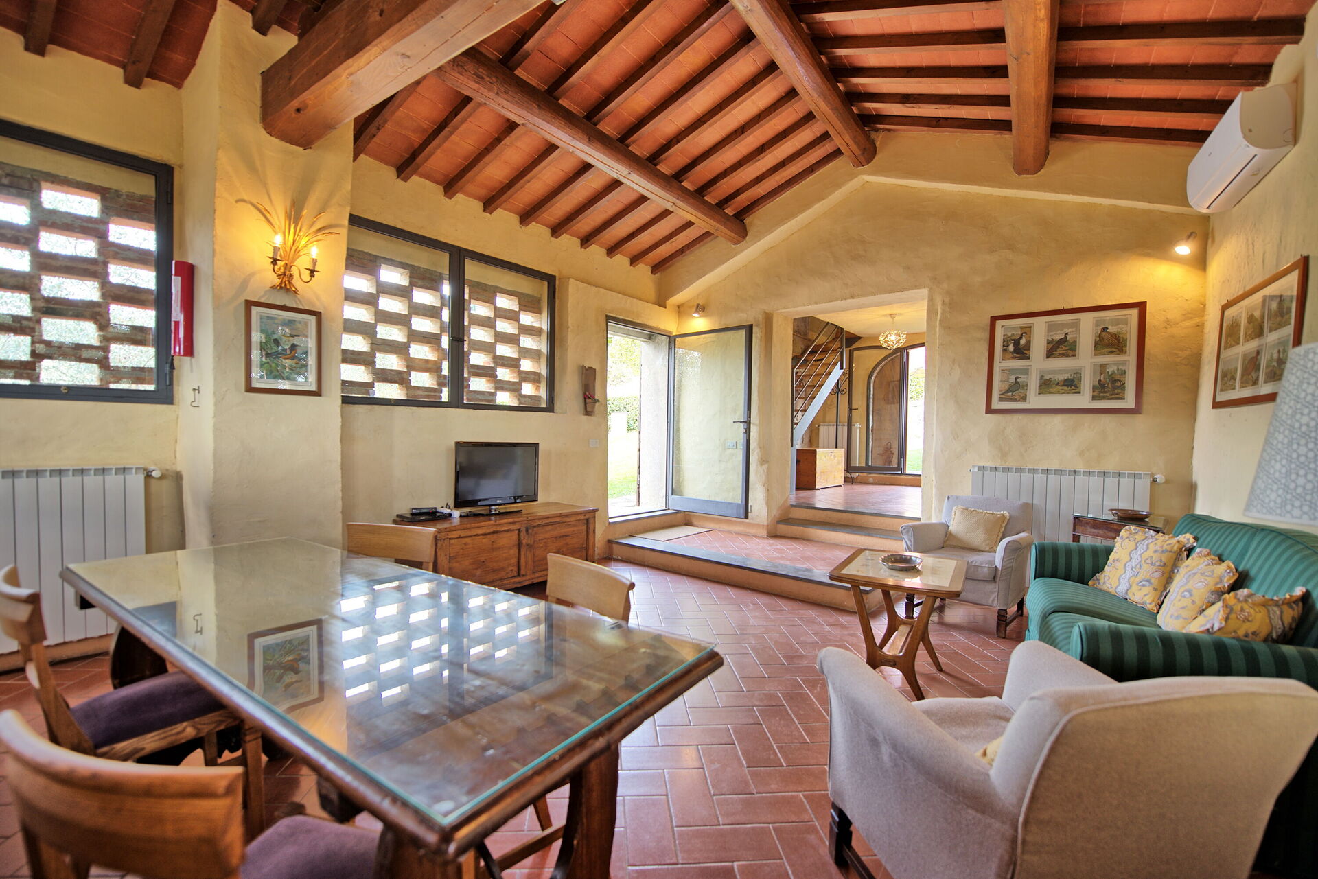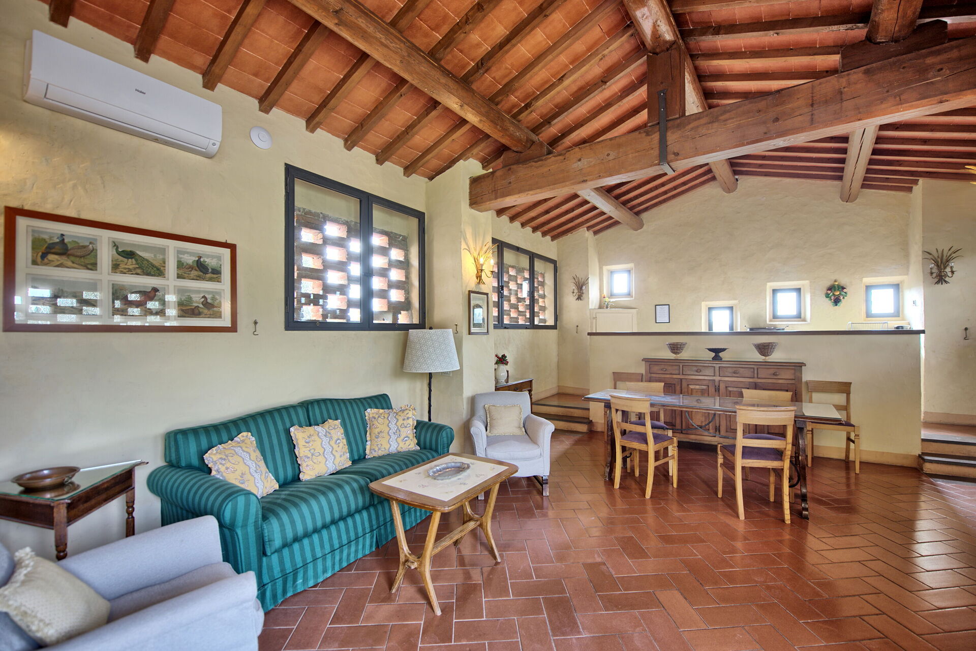 Questa villa è stata ricavata dalla ristrutturazione di un’antica proprietà le cui origini risalgono al 1300; gli ambienti sono confortevoli e arredati in stile toscano. La proprietà si compone dalla villa principale (16 persone) e da un fienile (4 persone) situato a pochi metri dalla villa. In totale Villa Cona può ospitare fino a 20 persone grazie alle sue 10 camere da letto e alle sue ampie zone sia interne che esterne.