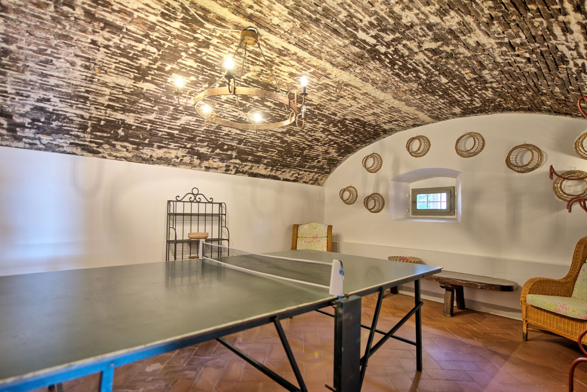 Piano terreno inferiore (accessibile anche da ingresso indipendente): soggiorno (internet wi-fi, tv) con angolo cottura (piano cottura, forno, frigorifero, lavastoviglie), 2 camere matrimoniali (aria condizionata), 2 bagni ognuno con doccia (senza finestra), salotto con tavolo da ping pong.