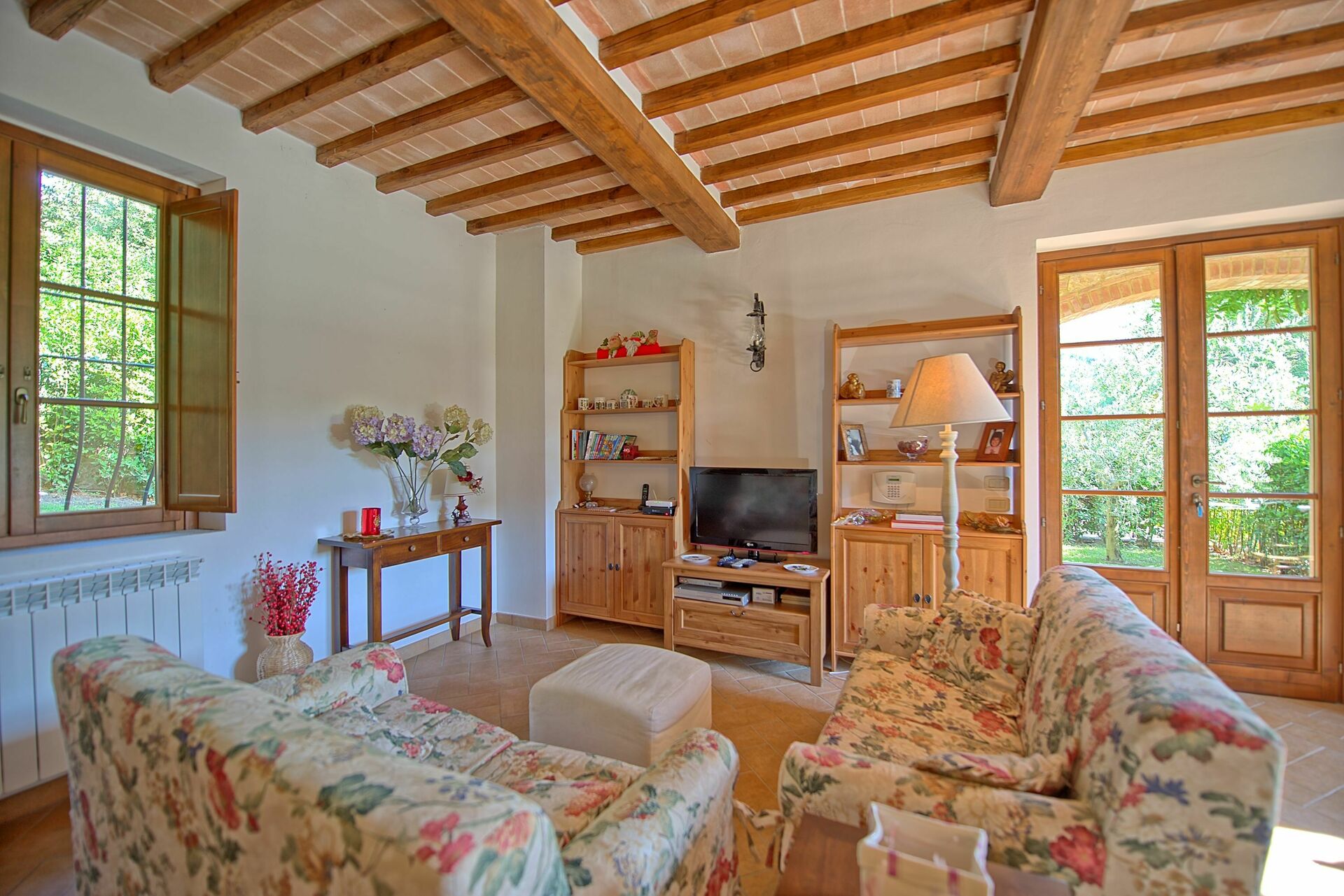 Gli interni sono arredati con molto gusto utilizzando elementi tipici toscani. Casa Maria Luisa offre un ambiente provvisto di tutti i comfort ed in particolare di un bel caminetto per rendere l'ambiente ancora più caldo accogliente nelle stagioni fredde. All’esterno una zona privata ed attrezzata permette di mangiare all’aria aperta e di godere del bel panorama circostante. Una bella piscina si trova a pochi metri di distanza e il suo utilizzo è in comune con gli ospiti di altre 5 unità.