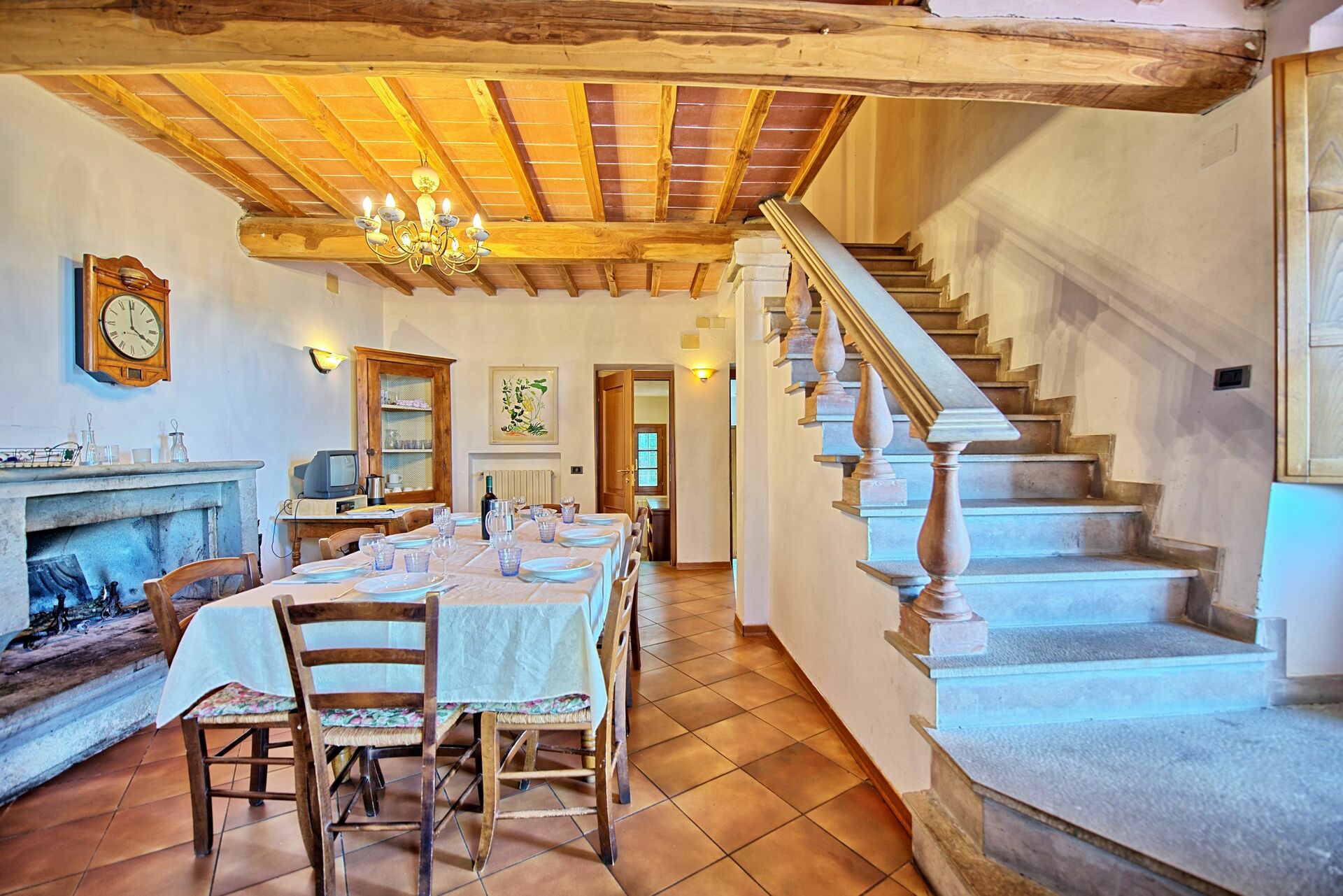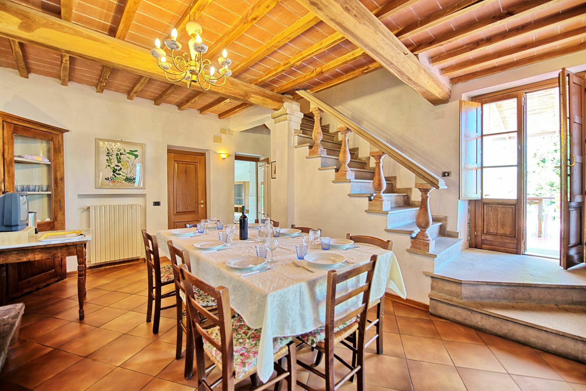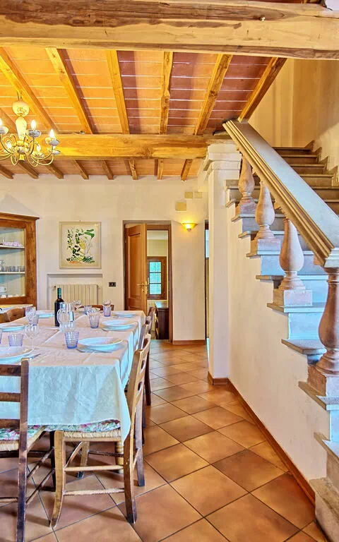 Soffitti con travi a vista e mobili in stile.