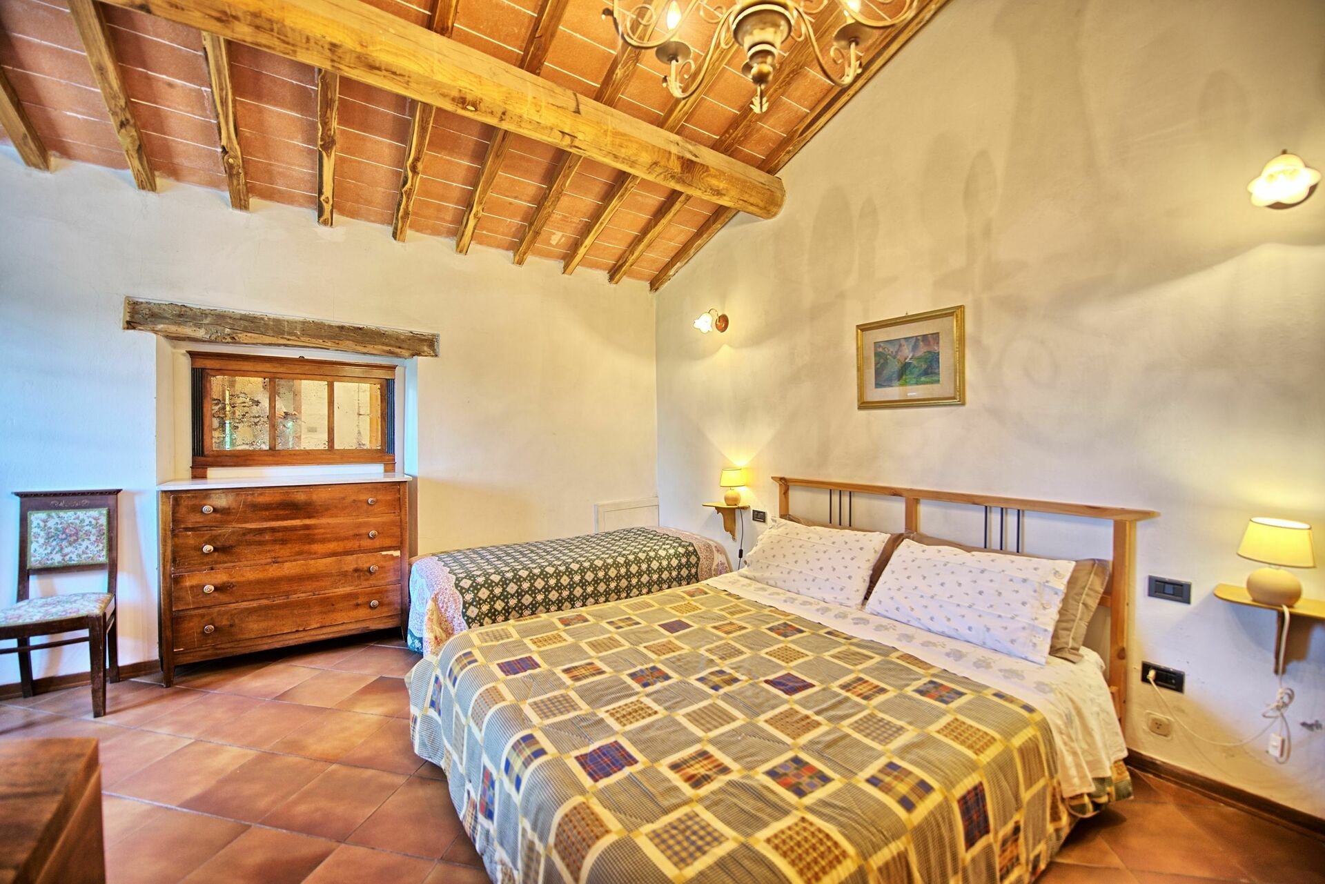 Primo piano: 2 camere matrimoniali, bagno con doccia.