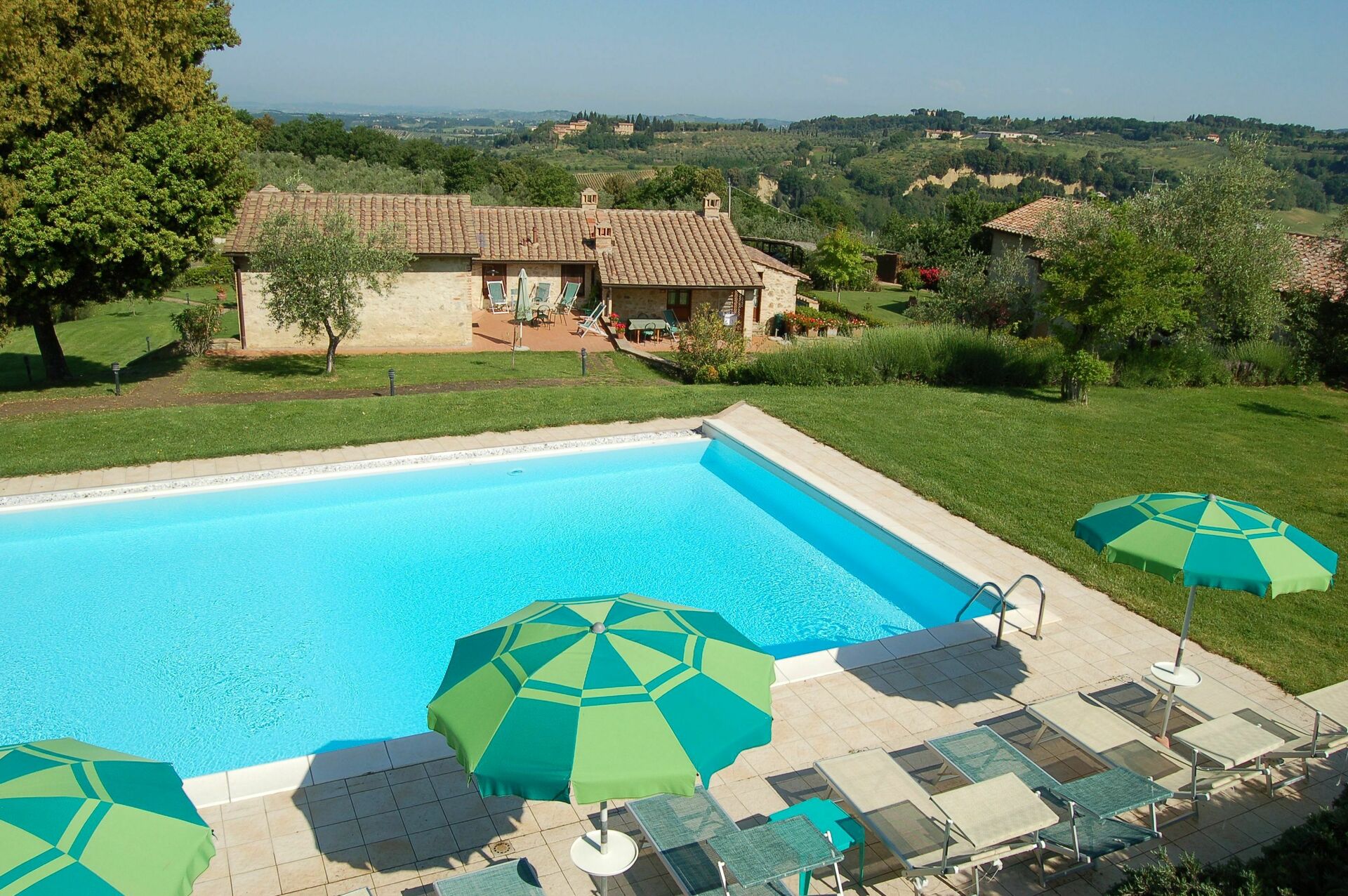 Magnifique propriété, très bien située au calme mais proche des commerces (Poggibonsi) et de routes principales (accès Sienne/Florence). Ce qui est très pratique pour pouvoir visiter la Toscane. Très bon accueil du propriétaire, la piscine est superbe, nous avons passé d'excellentes vacances !