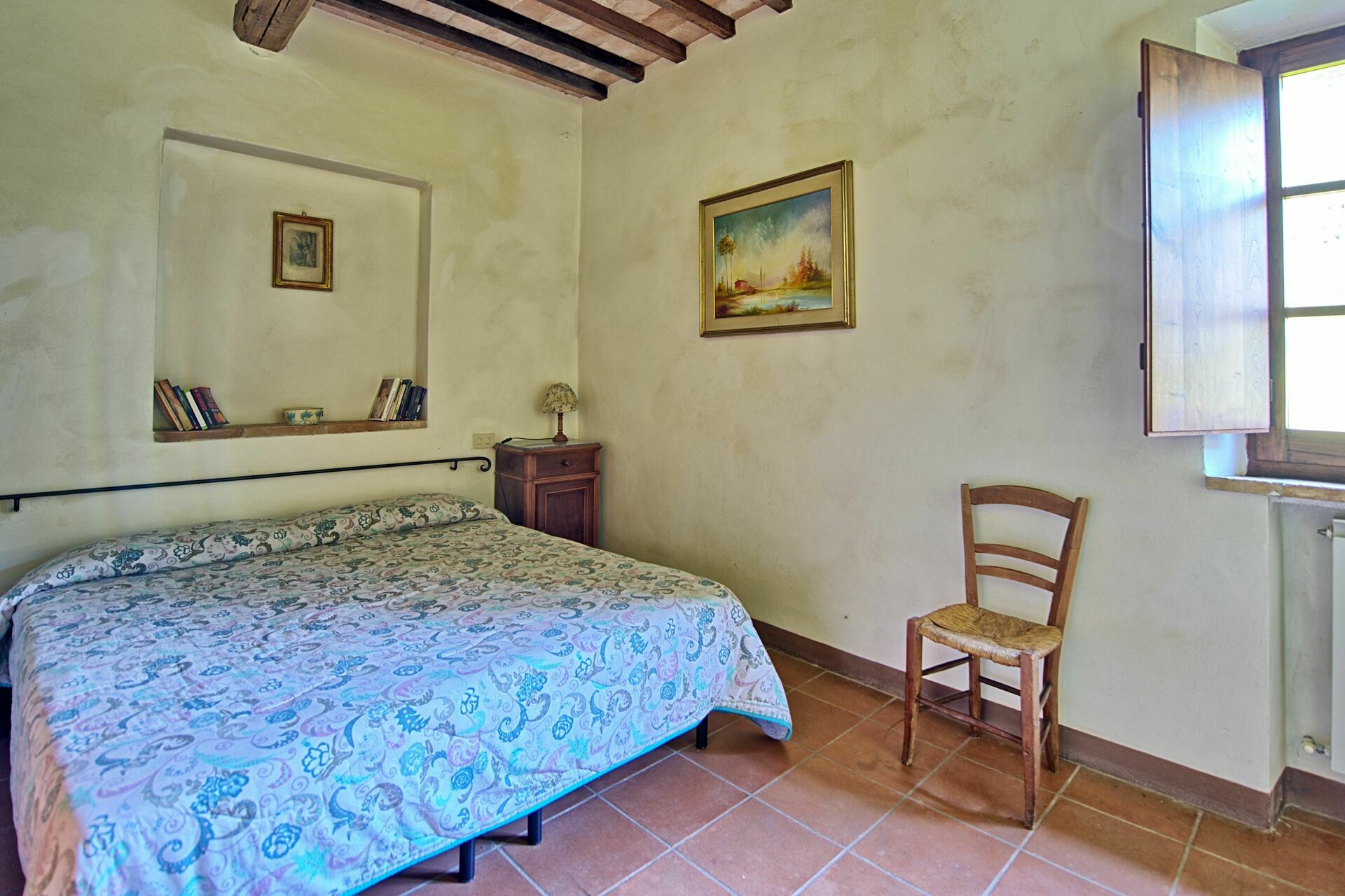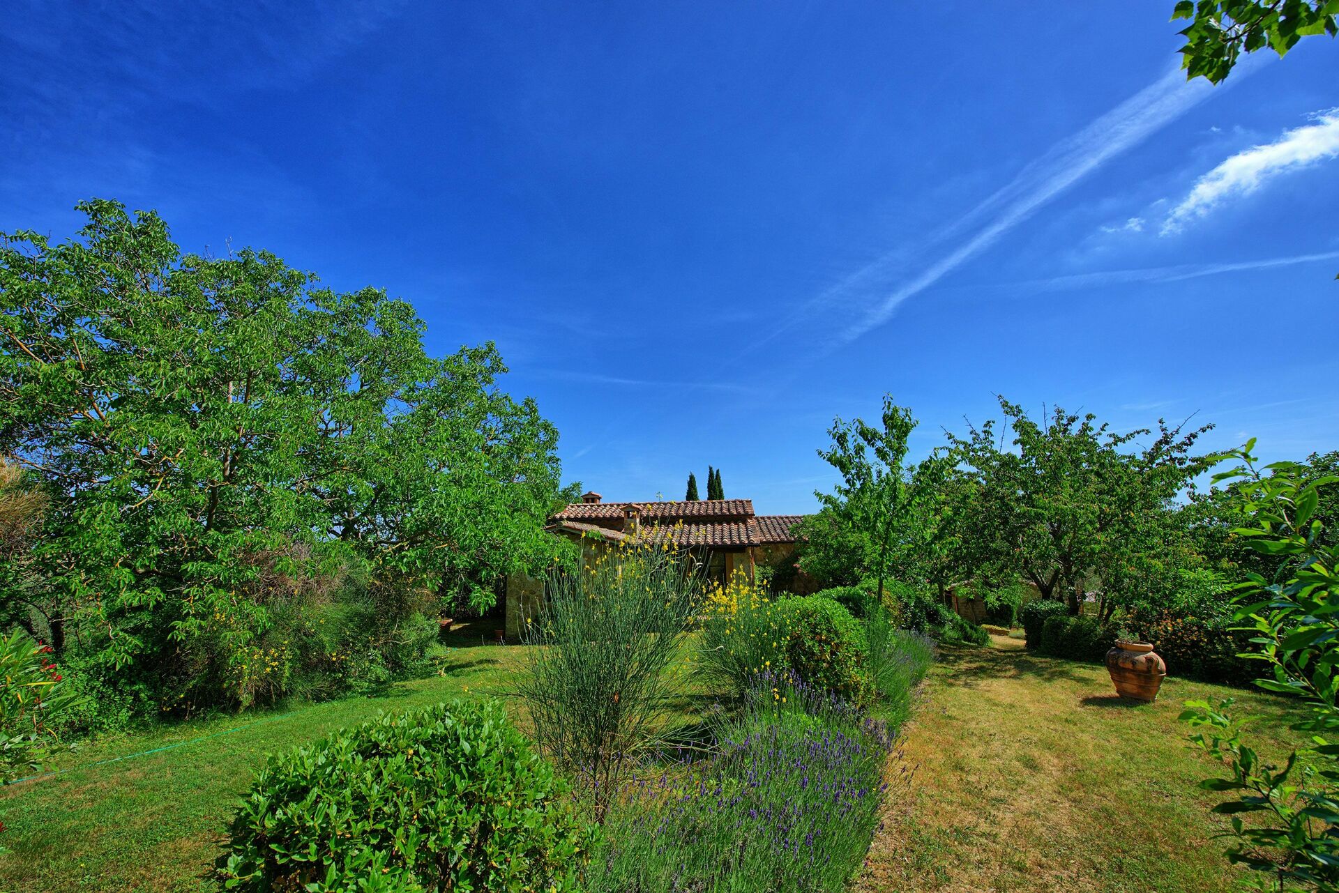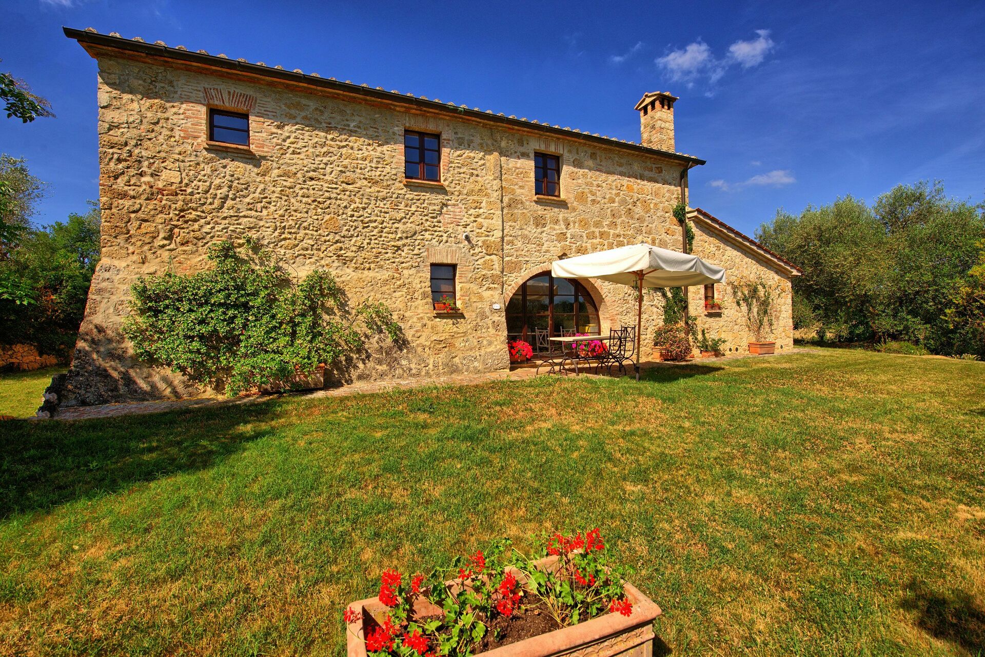 La posizione della villa in affitto è molto strategica in quanto è poco distante dall’autostrada (circa 4 km) e dalle zone più belle della Val d’Orcia, delle crete senesi e dell’Umbria. Nel vicino paese di Chiusi si trova una comoda stazione ferroviaria che permette di raggiungere agevolmente in treno città come Siena, Firenze e Roma. Il territorio circostante è famoso per i numerosi musei dedicati agli etruschi, la cui civiltà trovò proprio in queste zone un terreno fertile dove crescere e prosperare.