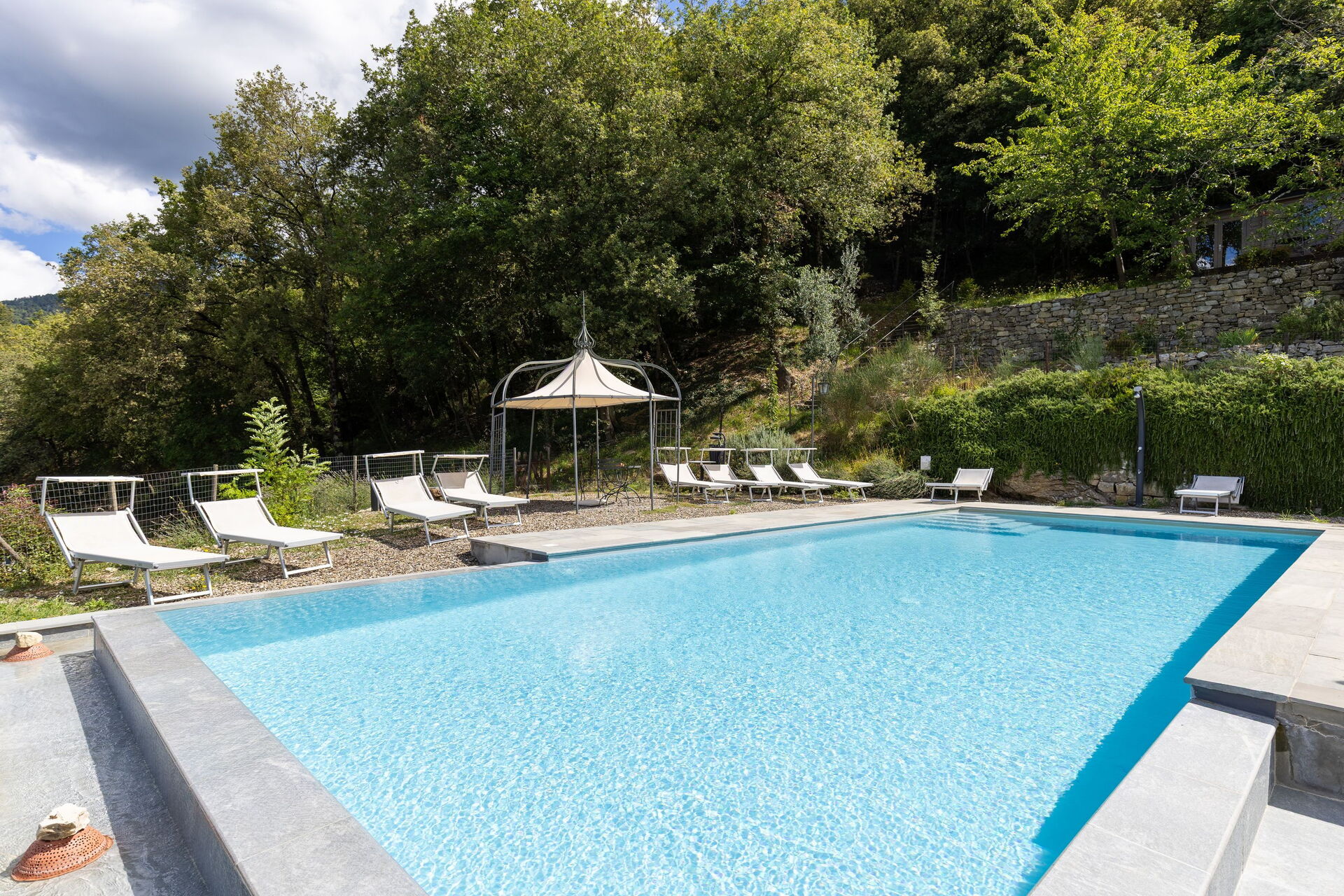 All’interno della proprietà si trova un bel giardino (1000 m2) che si sviluppa su più livelli e una piscina riservata all’uso esclusivo degli ospiti.