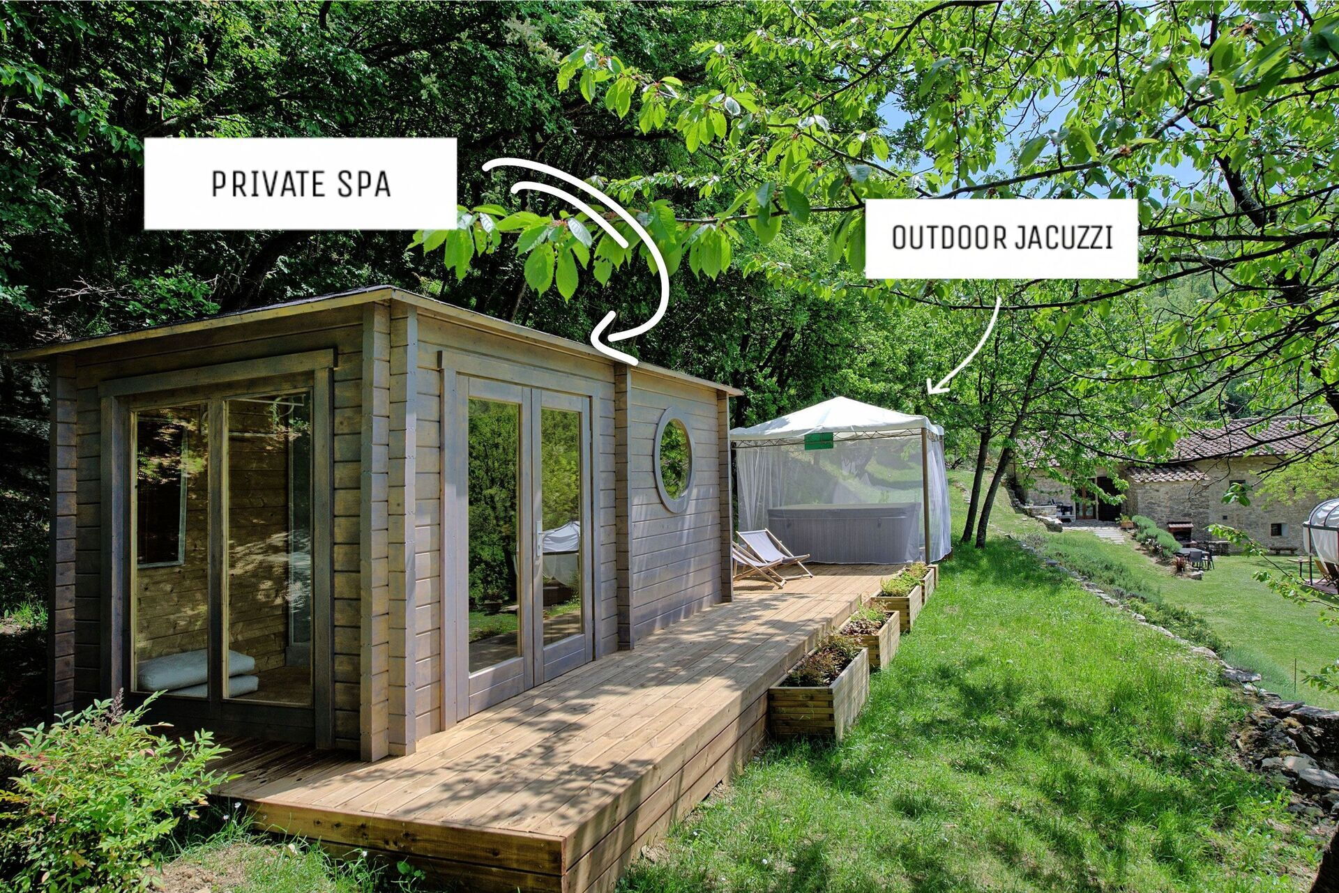 All’interno della proprietà si trova un bel giardino (1000 m2) che si sviluppa su più livelli e una piscina riservata all’uso esclusivo degli ospiti.