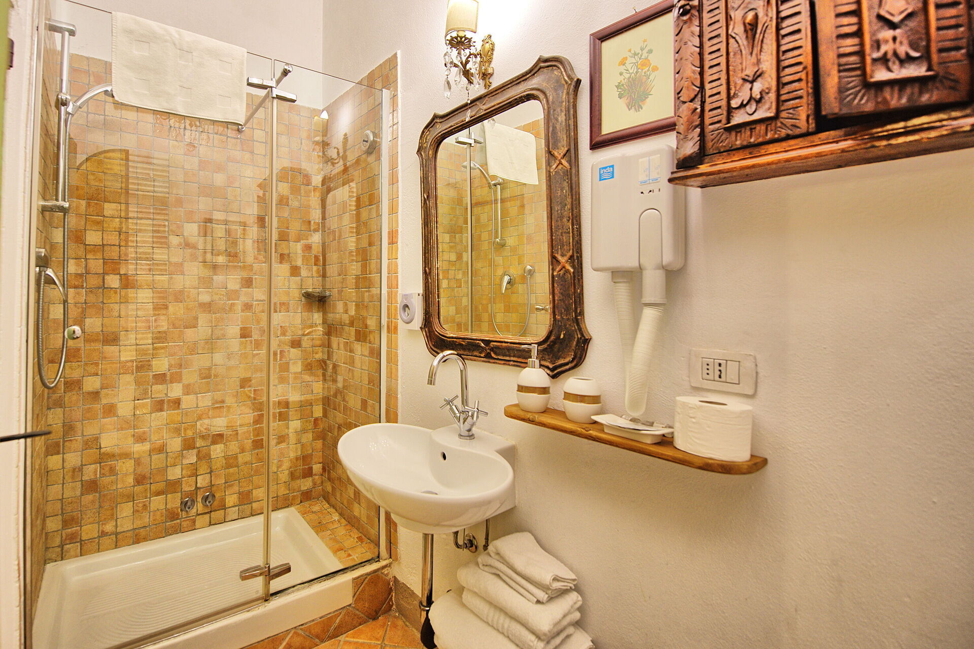 Piano terreno: camera matrimoniale (aria condizionata) panoramica con bagno privato con doccia, accesso ad una terrazza privata.