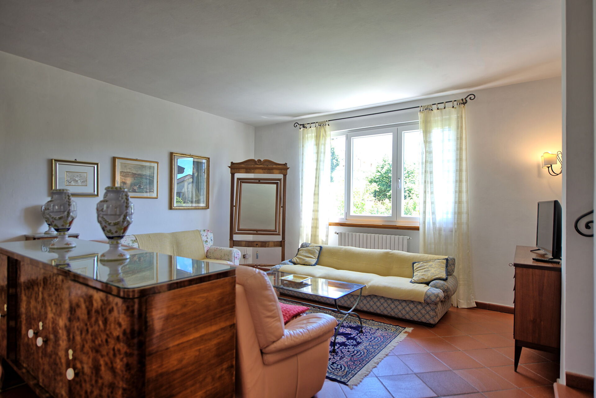 All'interno della casa vacanze, al piano terra vi è un grande ed areato soggiorno con camino, divani, TV, internet Wi-Fi e adiacente area pranzo, tutto arredato con gusto seguendo il tradizionale stile toscano. La cucina attrezzata offre tutti gli elementi essenziali per poter essere autonomi nella preparazione dei pasti (è anche disponibile un barbecue all'esterno della casa). Al piano terra ci sono due grandi camere da letto matrimoniali, ognuna delle quali ha un letto singolo aggiuntivo e un bagno con doccia.