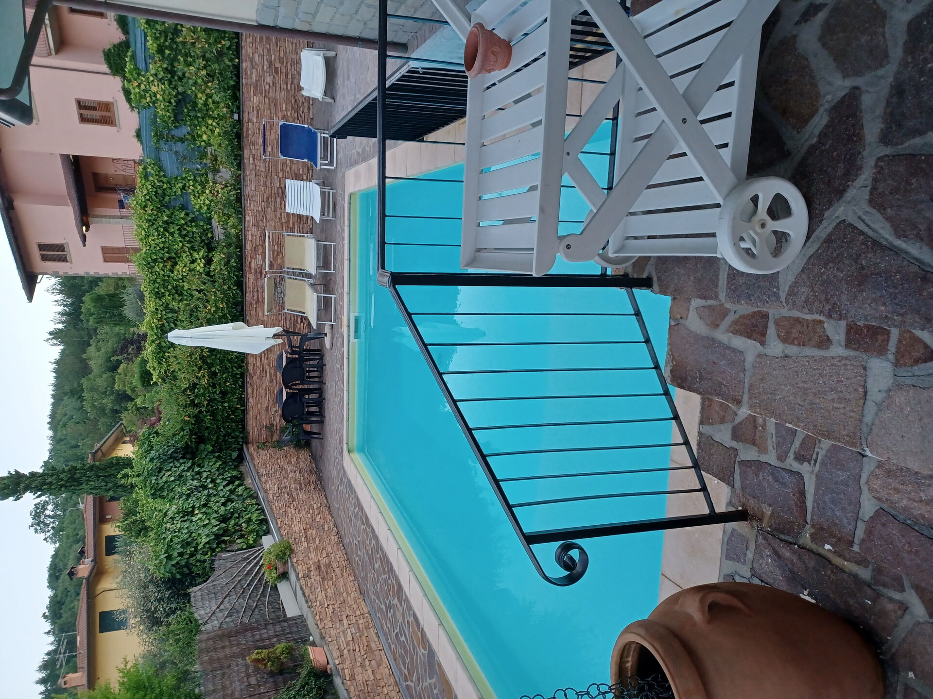 - terrazze e piscina riservata all’uso esclusivo degli ospiti (8 x 4 m - profondità minima 1 m - profondità massima 1,6 m - aperta dal 15/04 al 15/10); l'impianto di depurazione della piscina è a sale