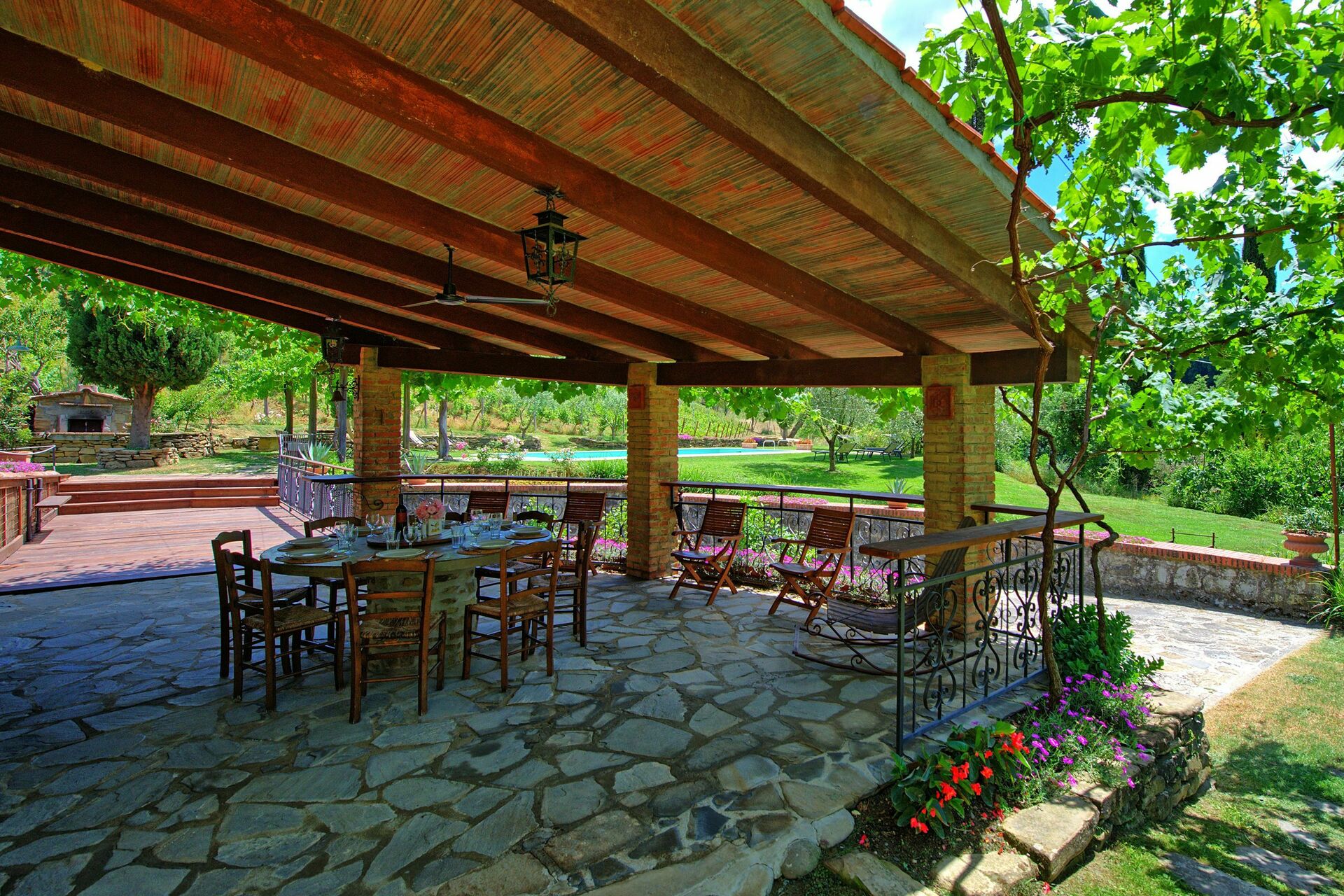 - ampio pergolato di vite attrezzato per mangiare all’aperto