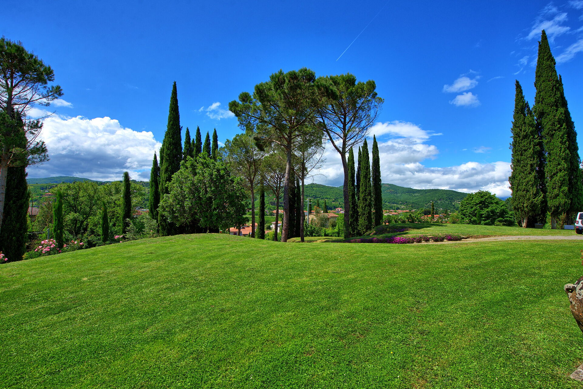 The property was beautiful and very clean. We stayed at the villa for 6 days and were very pleased. We had the pleasure of meeting the owner Alesandro and several occasions. Very nice and easy to work with. He makes his own wine at the villa but also is an artist making jewelry, wine pourers, napkins rings.... We also met his mother who is a pleasure. The villa is in a good location. Quiet but close enough to be able to get out and eat and see things without too much of a drive. I would highly recommend this villa.