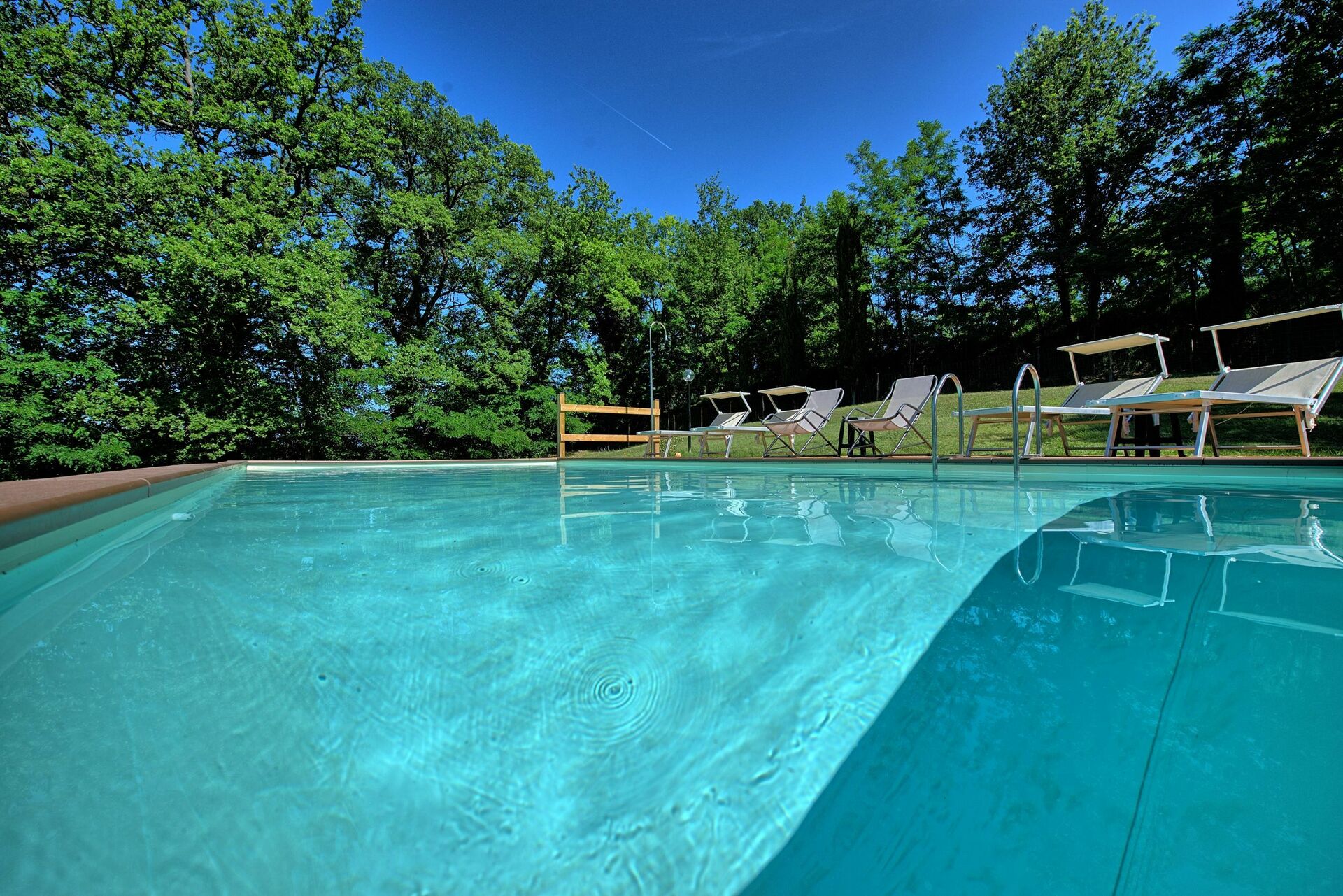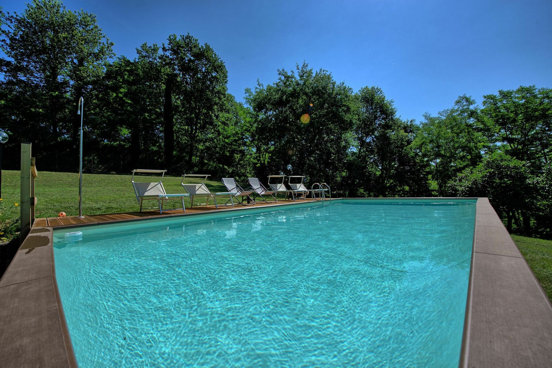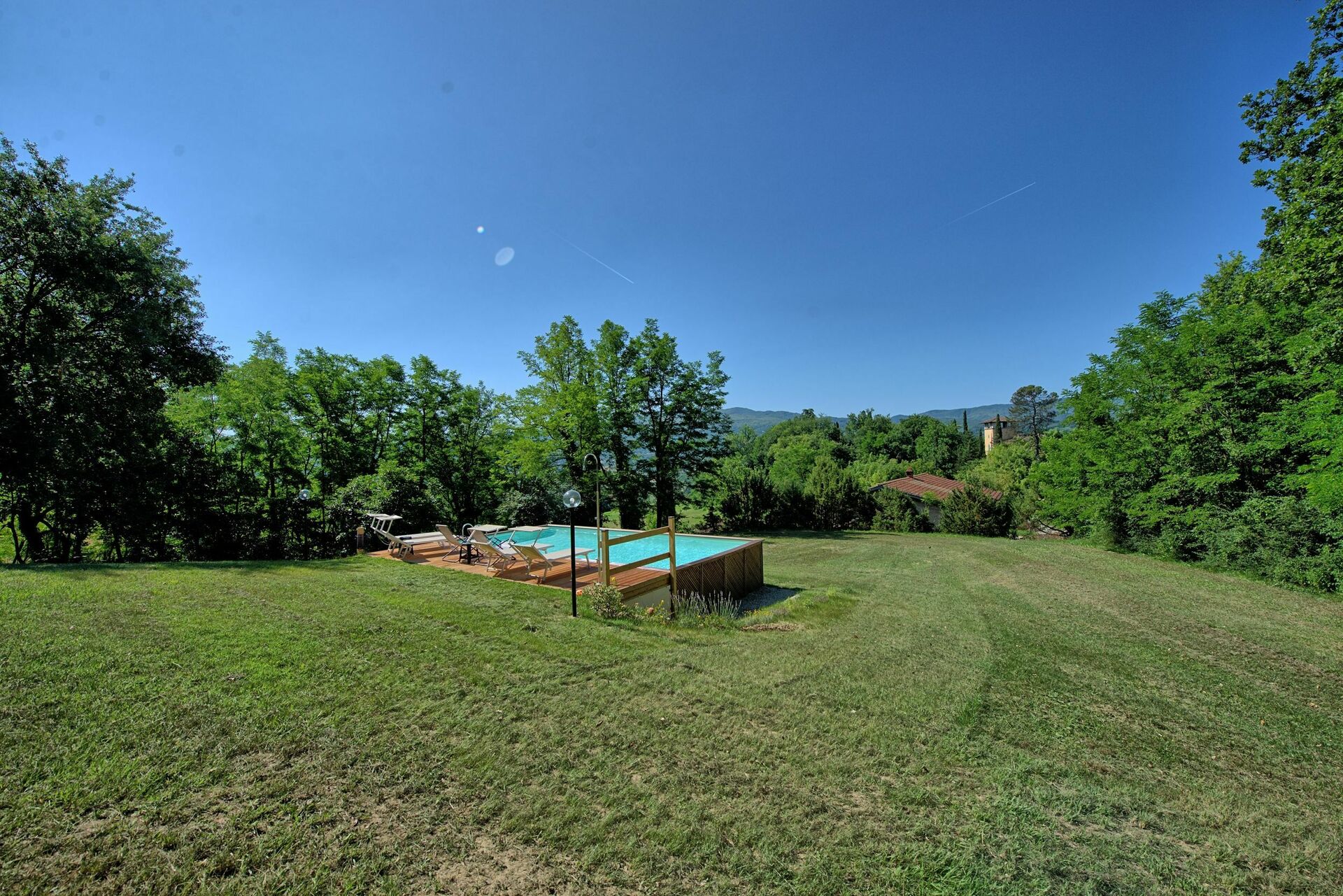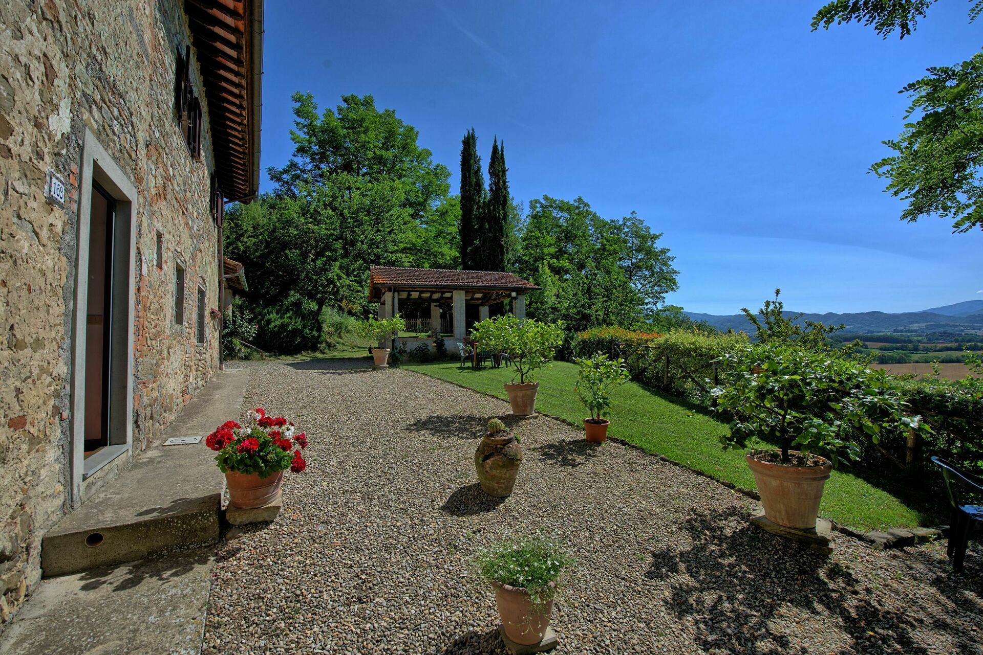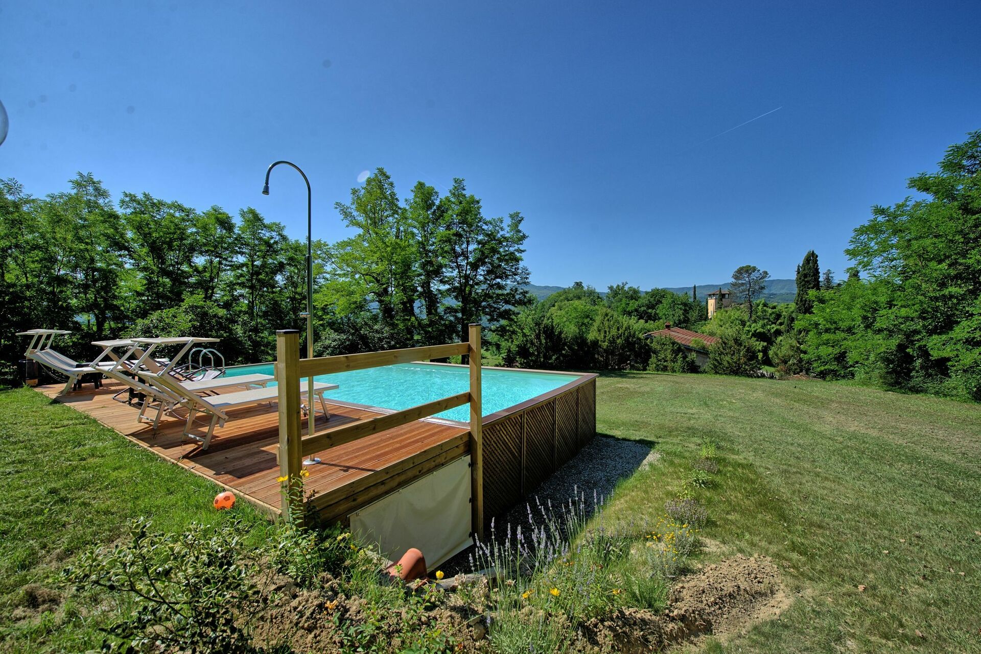 All'esterno, Casale Giotto è circondato da un grande giardino che ospita una bella piscina privata e panoramica dotata di lettini prendisole e gli ospiti possono usufruire di un'area attrezzata con barbecue, pergola e mobili da giardino per poter organizzare gustose grigliate da condividere e mangiare all'aperto godendosi la meravigliosa vista panoramica del paesaggio circostante che si estende fino al Monte Falterona, luogo in cui sorge l'Arno.