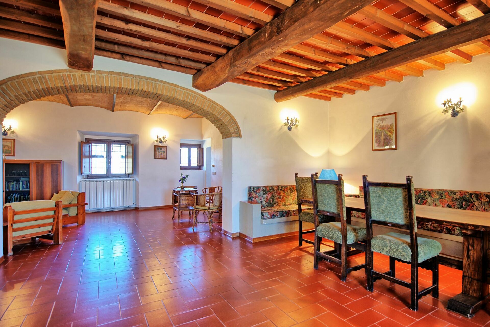 All'interno, il casale in affitto è dotato di ogni comfort per garantire la massima tranquillità degli ospiti. Gli ampi ed accoglienti interni sono arredati con gusto seguendo il tipico stile rustico delle case di campagna in Toscana, creando un ambiente suggestivo per godere di un'autentica esperienza di vita tra le colline in Mugello. Grazie alle sue 8 camere da letto, ai 5 bagni e ai numerosi spazi in comune, questa villa per vacanze può ospitare comodamente fino a 16 persone. Questa casa vacanze è la dimora ideale per trascorrere un meraviglioso soggiorno con la propria famiglia o in compagnia di un grande gruppo di amici.