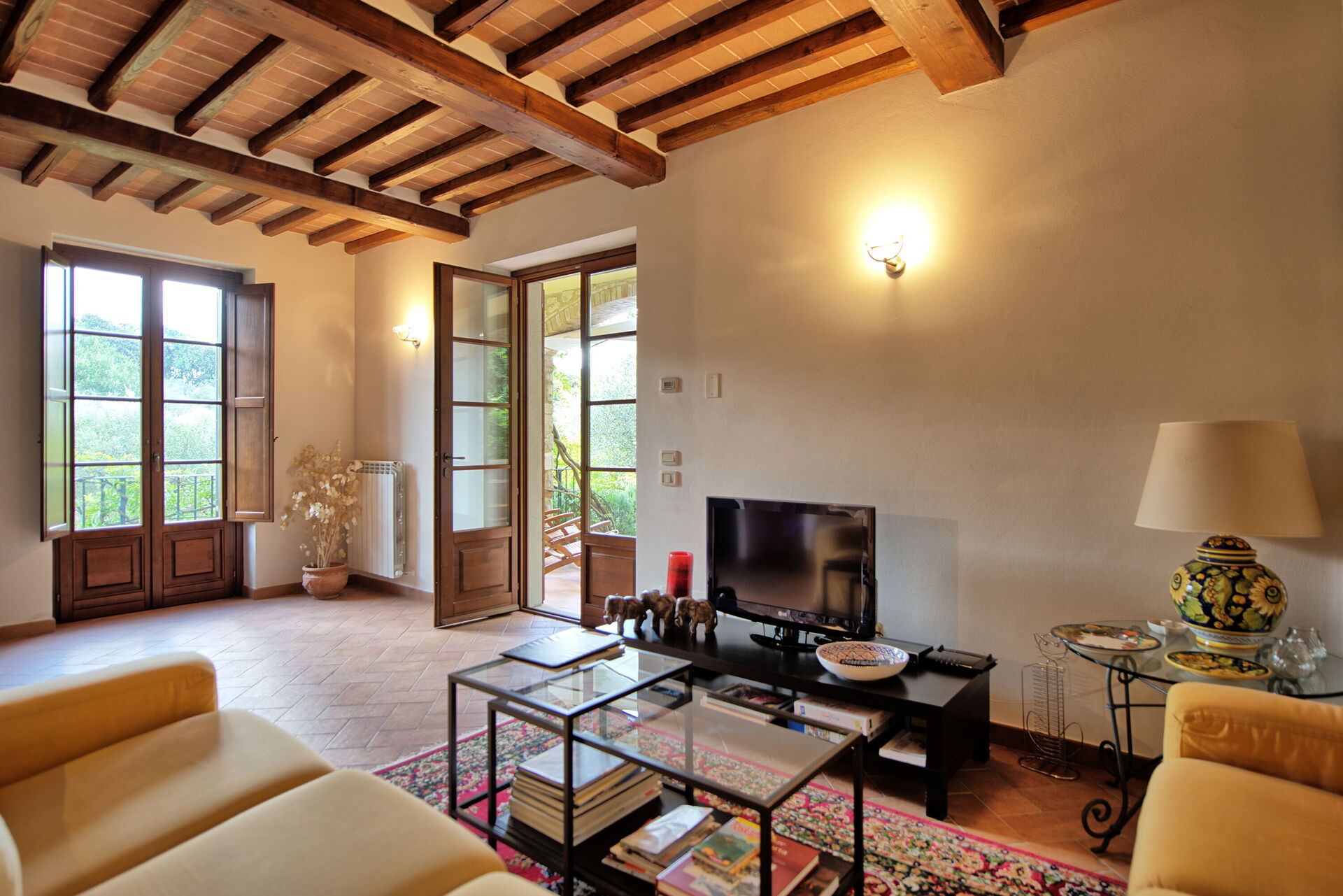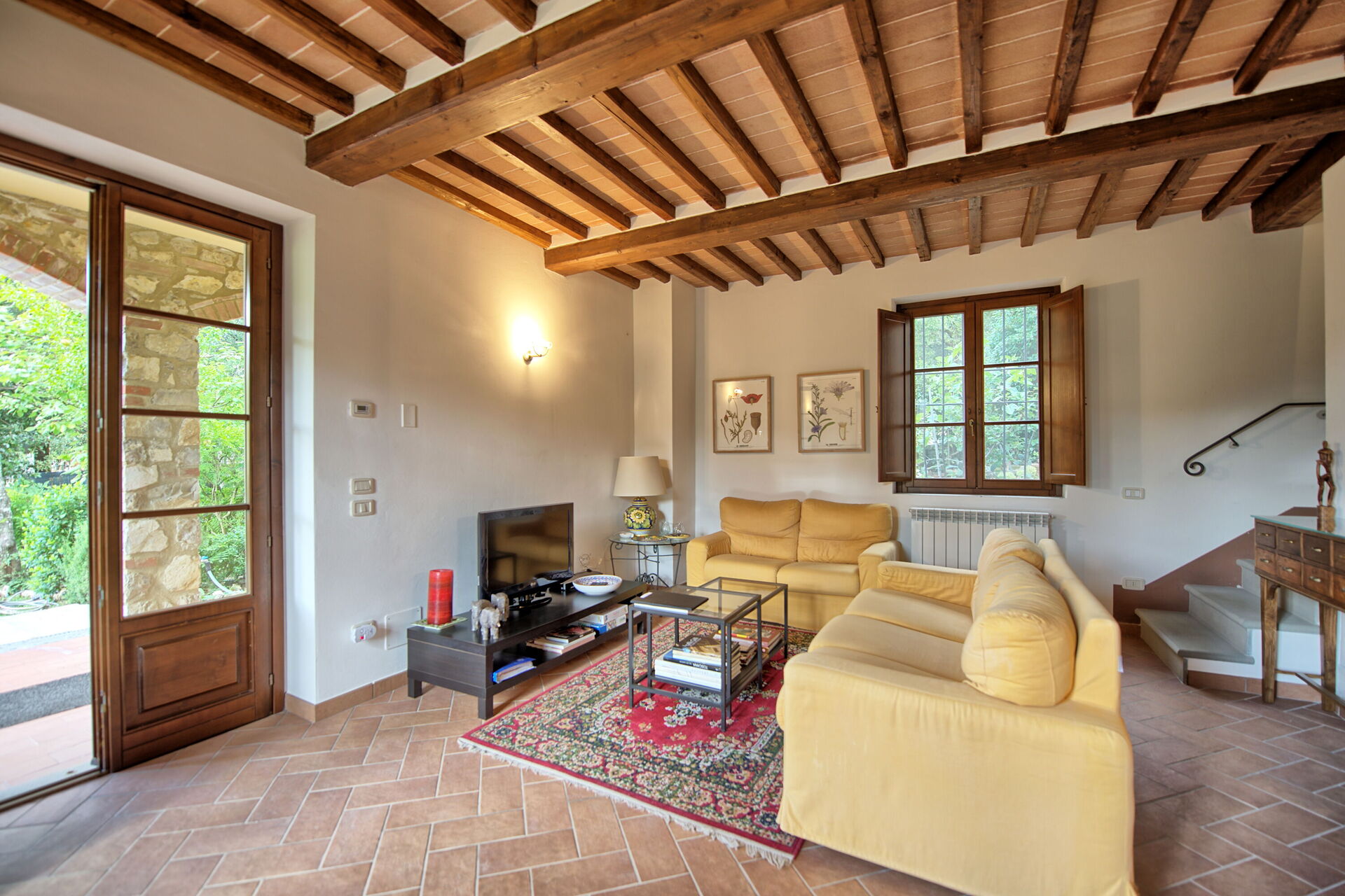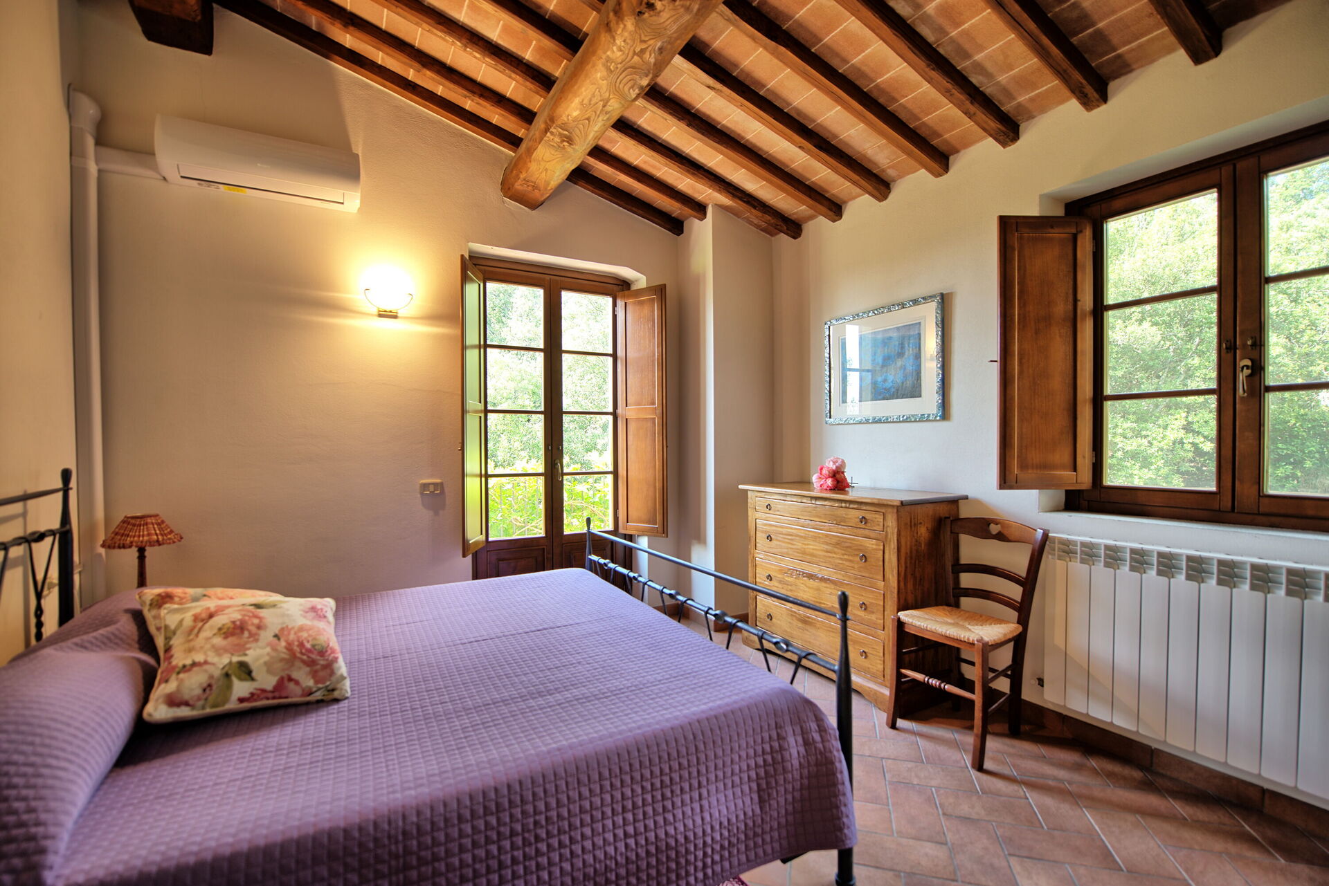 Gli interni sono dotati di ogni comfort e sono stati arredati con gusto utilizzando elementi tipici delle case di campagna in questa zona della Toscana.