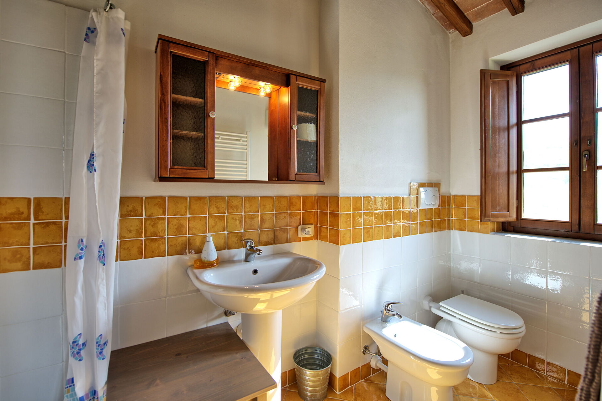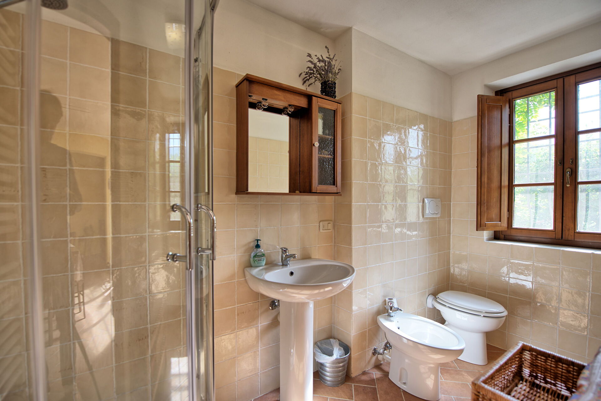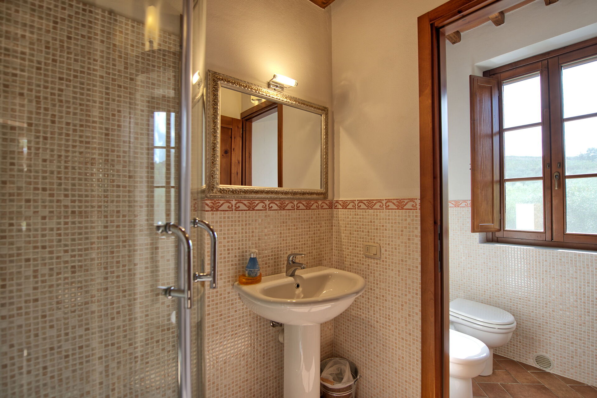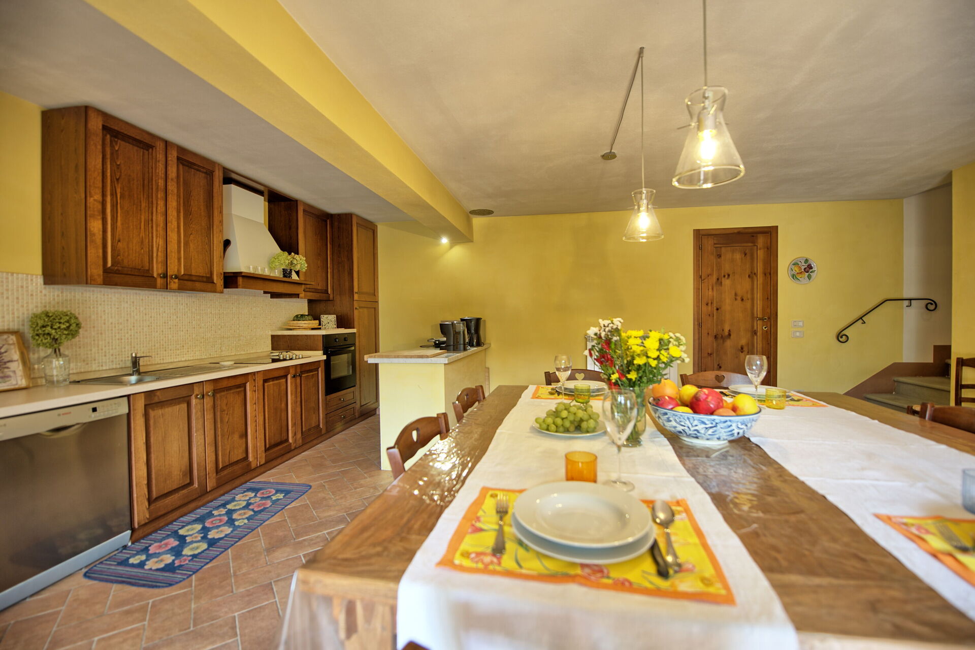 Gli interni sono dotati di ogni comfort e sono stati arredati con gusto utilizzando elementi tipici delle case di campagna in questa zona della Toscana.