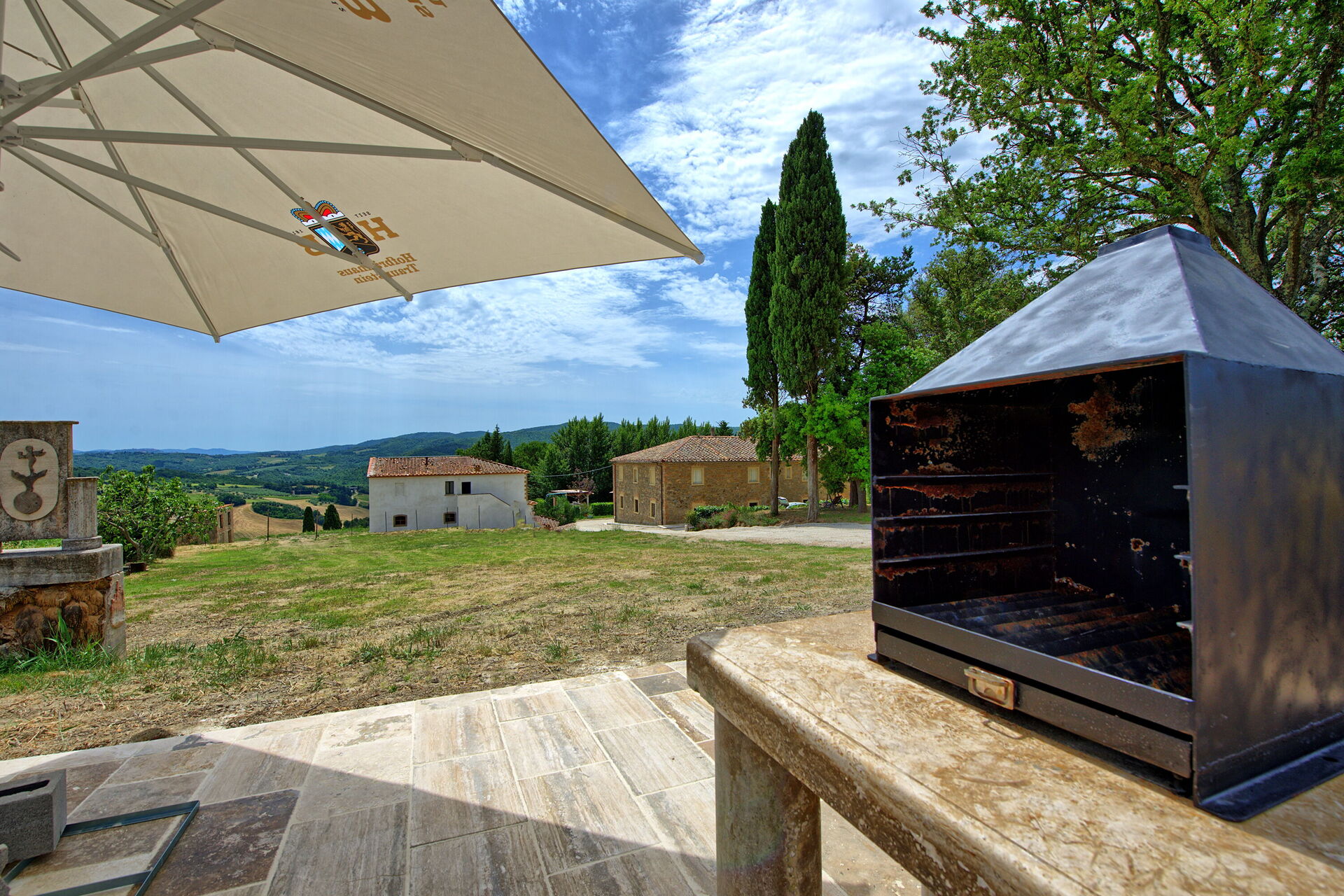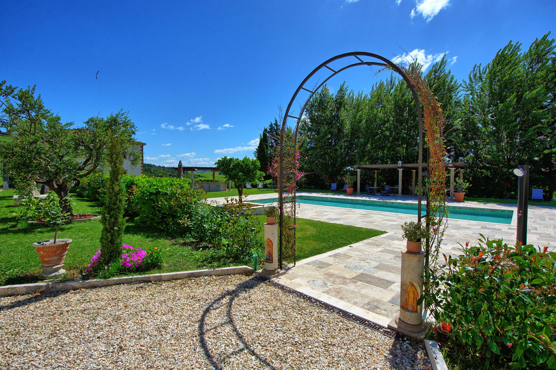 Questa esclusiva proprietà in affitto per vacanze è immersa nella campagna toscana e dolci colline con uliveti e vigneti circondano la proprietà. Il curato giardino ospita una bella piscina il cui uso è condiviso tra gli ospiti degli appartamenti del borgo; circonda la piscina un solarium in travertino attrezzato con lettini ed ombrelloni: un luogo perfetto per rilassarsi e rinfrescarsi nelle giornate estive in compagnia di amici e familiari.