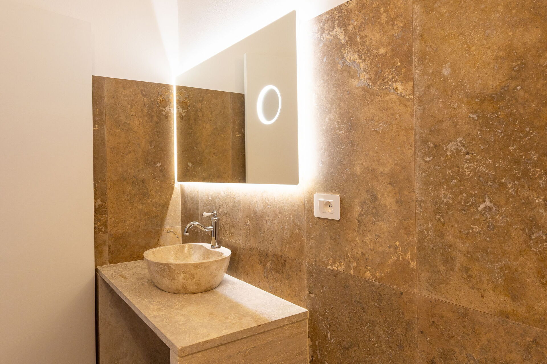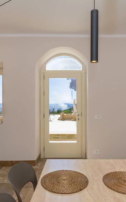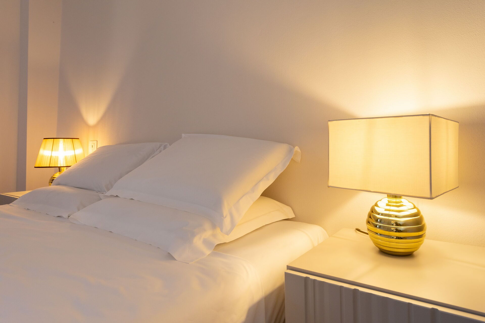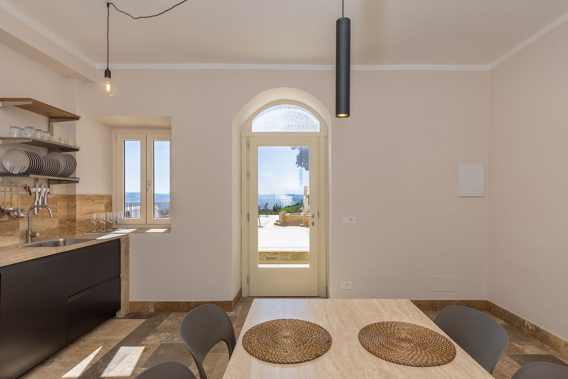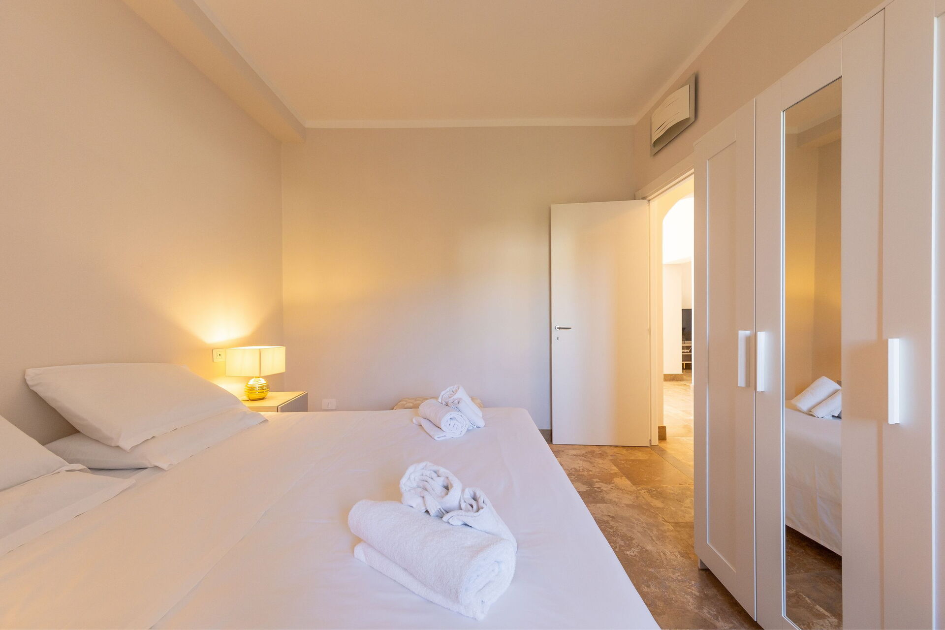 Piano terreno: soggiorno (smart TV e aria condizionata) con divano letto matrimoniale, zona pranzo e angolo cottura (lavastoviglie, forno, frigorifero, macchina da caffè espresso, tostapane), 2 camere matrimoniali (ognuna con aria condizionata), 2 bagni con doccia.