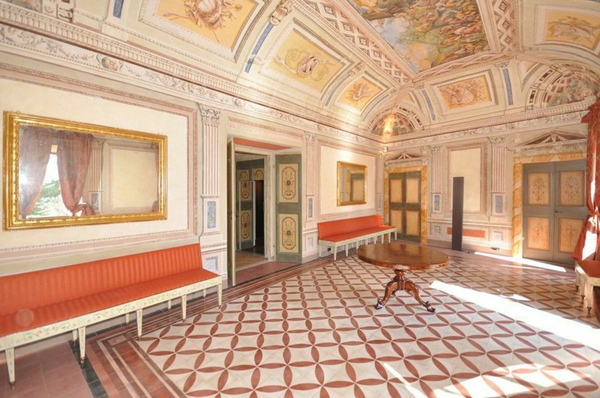 La villa si sviluppa su due piani collegati anche da un comodo ascensore: al piano terreno è presente la zona giorno con grandi saloni, mentre al secondo piano si trovano le 10 camere con altrettanti bagni.