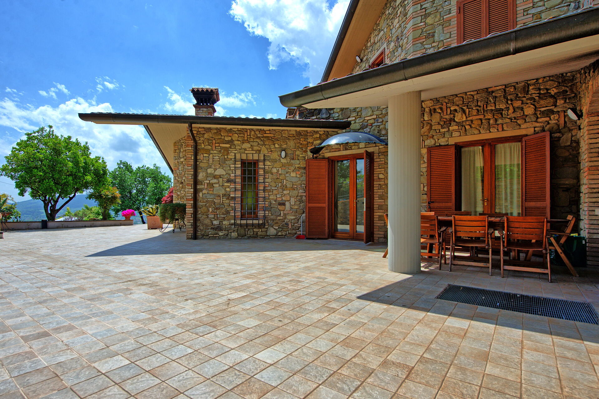 - veranda attrezzata con tavolo e sedie per mangiare all'aperto con forno a legna
