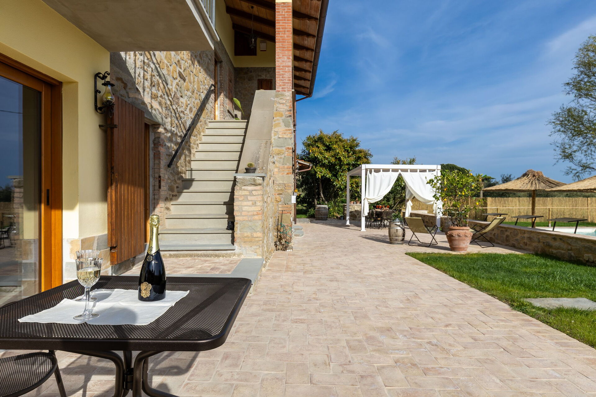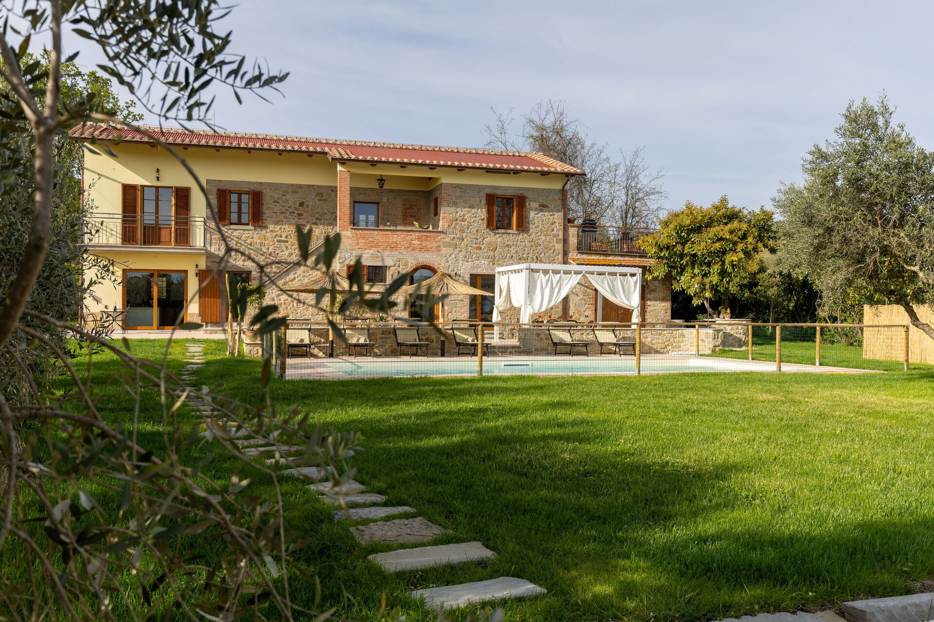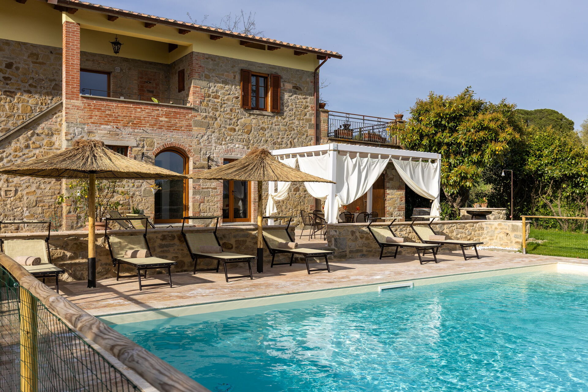 I lavori di ristrutturazione hanno portato alla luce una dimora molto accogliente e che grazie alle sue 3 camere può comodamente ospitare fino a 6/7 persone; esternamente una bella piscina e un ben curato giardino sono a completa disposizione degli ospiti. Una nuovissima pergola si trova nella terrazza tra la casa e la piscina ed è il luogo perfetto per gustarsi pranzi e cene all'aria aperta.