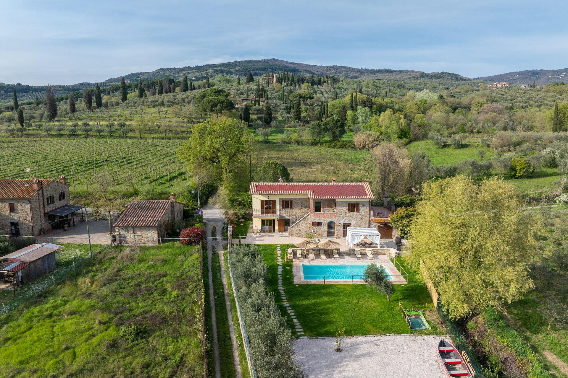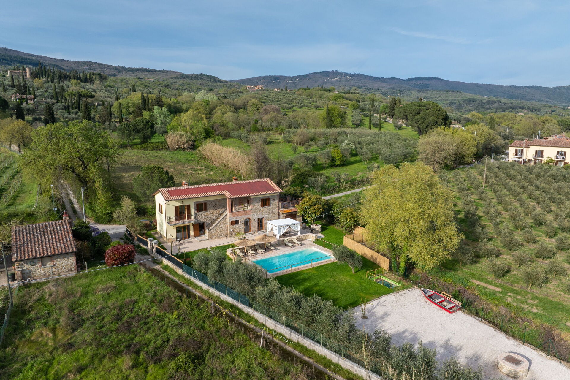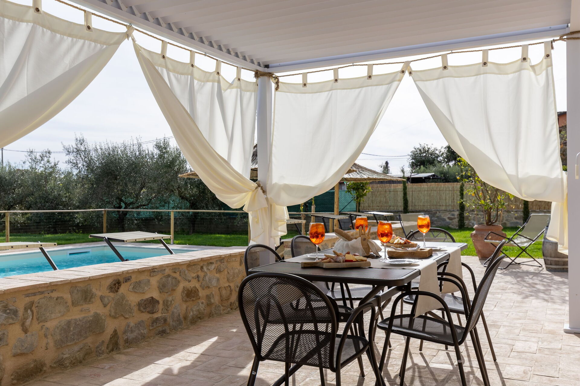 I lavori di ristrutturazione hanno portato alla luce una dimora molto accogliente e che grazie alle sue 3 camere può comodamente ospitare fino a 6/7 persone; esternamente una bella piscina e un ben curato giardino sono a completa disposizione degli ospiti. Una nuovissima pergola si trova nella terrazza tra la casa e la piscina ed è il luogo perfetto per gustarsi pranzi e cene all'aria aperta.