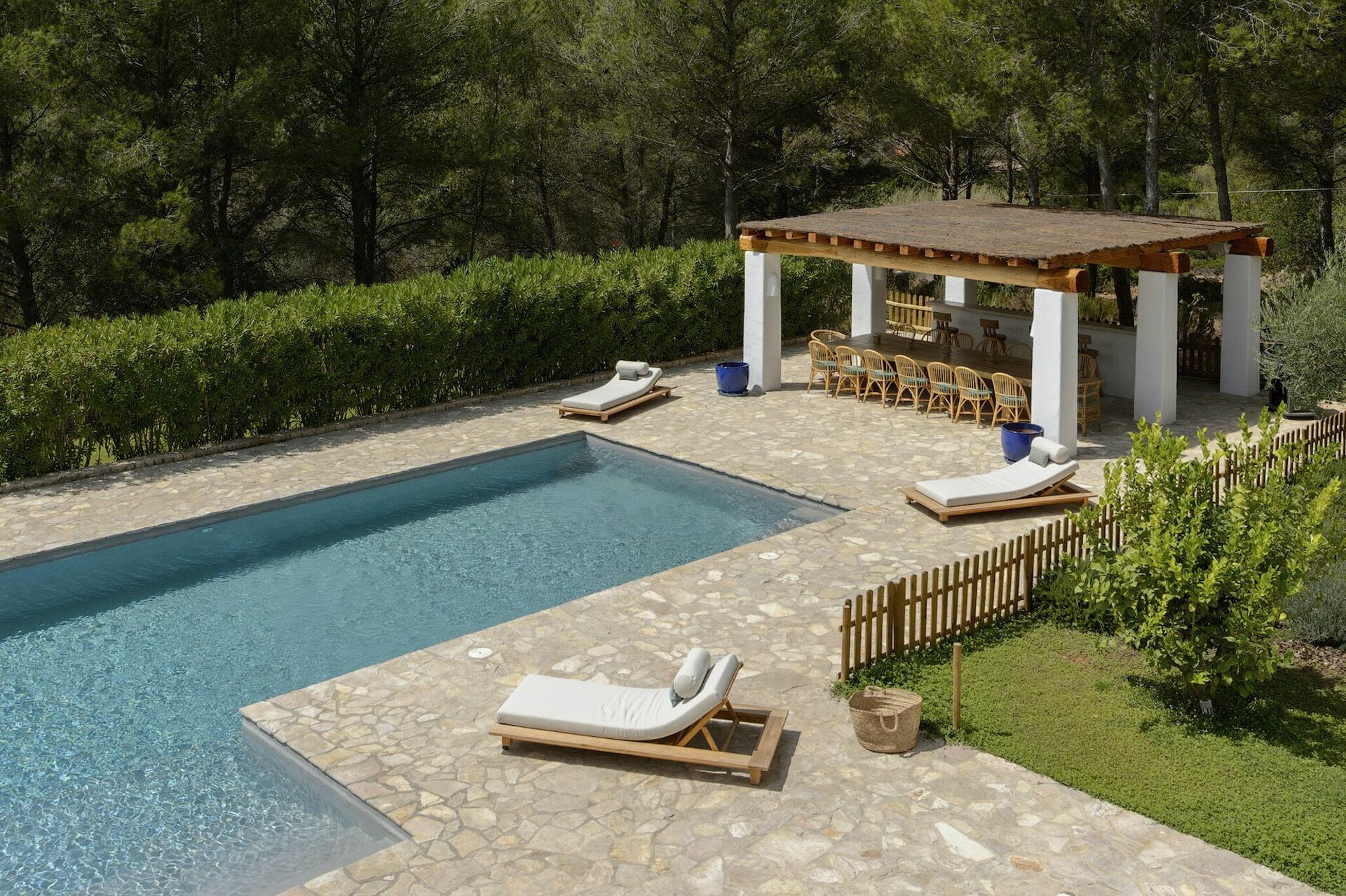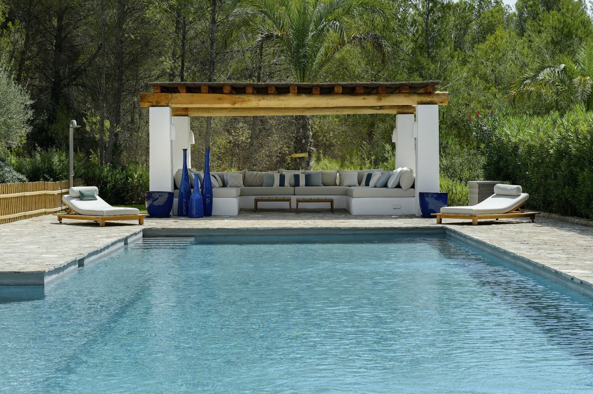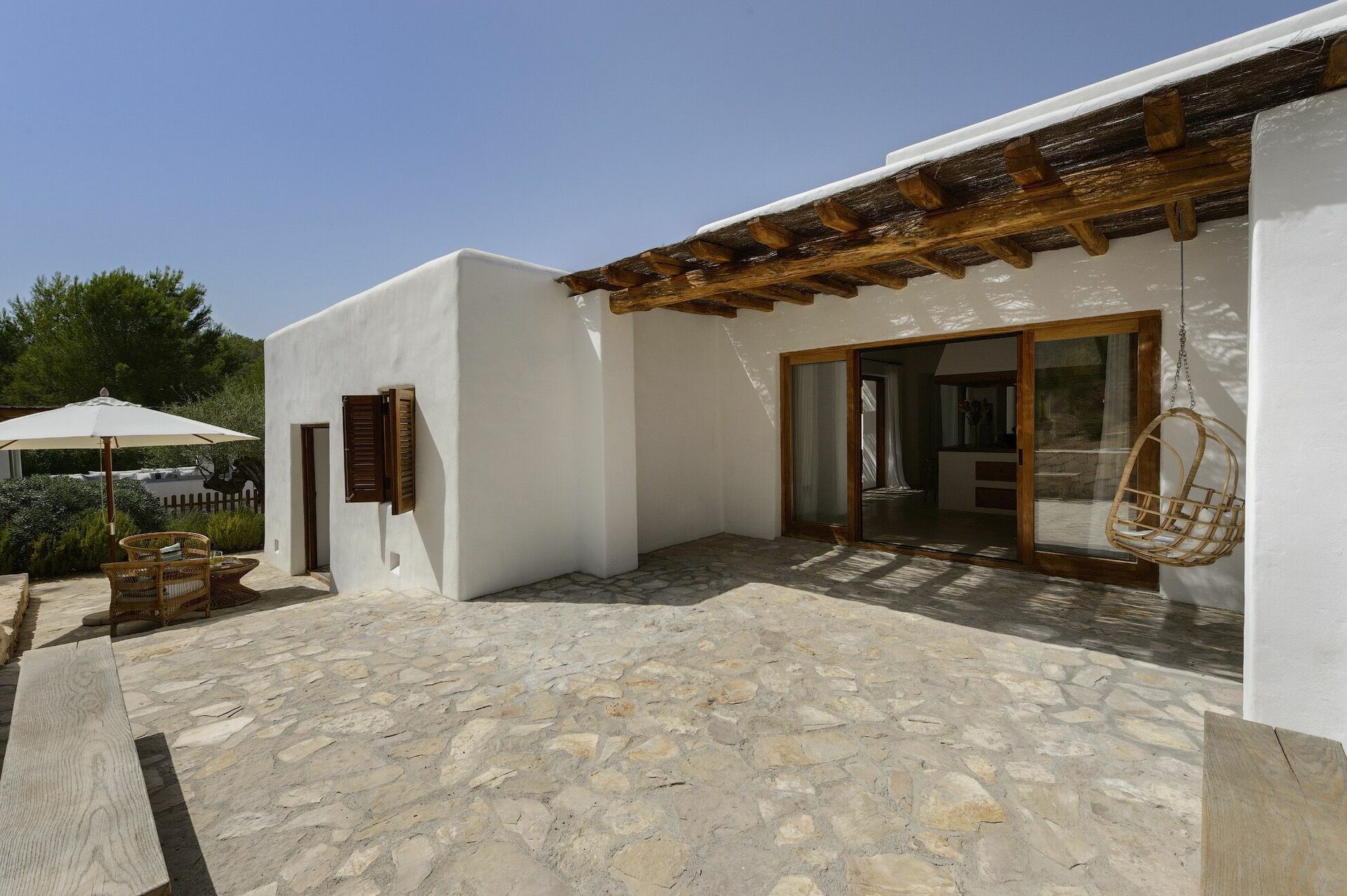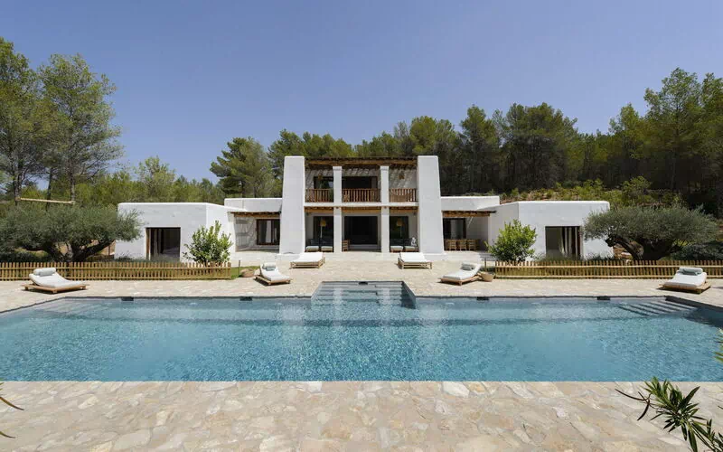 Villa di lusso con piscina privata in affitto nell'entroterra di Ibiza, perfetta per chi vuole trascorrere un soggiorno in pieno relax e lontano dal caos e dai turisti dell'isola.