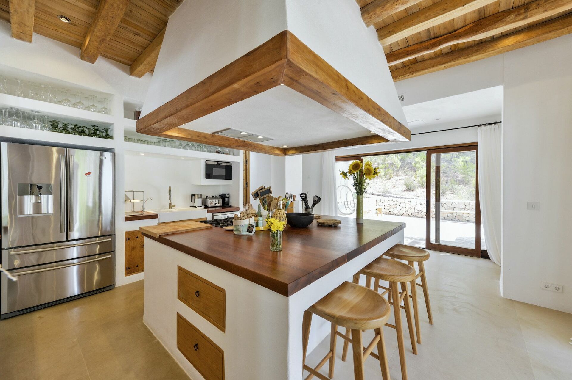 Questa lussuosa villa per vacanze è a pochi chilometri di distanza dalla città di Ibiza e da qui si possono altresì raggiungere facilmente le spiagge più belle dell'Isola. Ibiza è riconosciuta in tutto il mondo per la sua vita notturna, caratterizzata da feste, concerti e divertimento assicurato. Trovandosi nell'entroterra, Blakstad San Rafael è una location ottima per godere di privacy e tranquillità, lontano dalla vita mondana e caotica.
