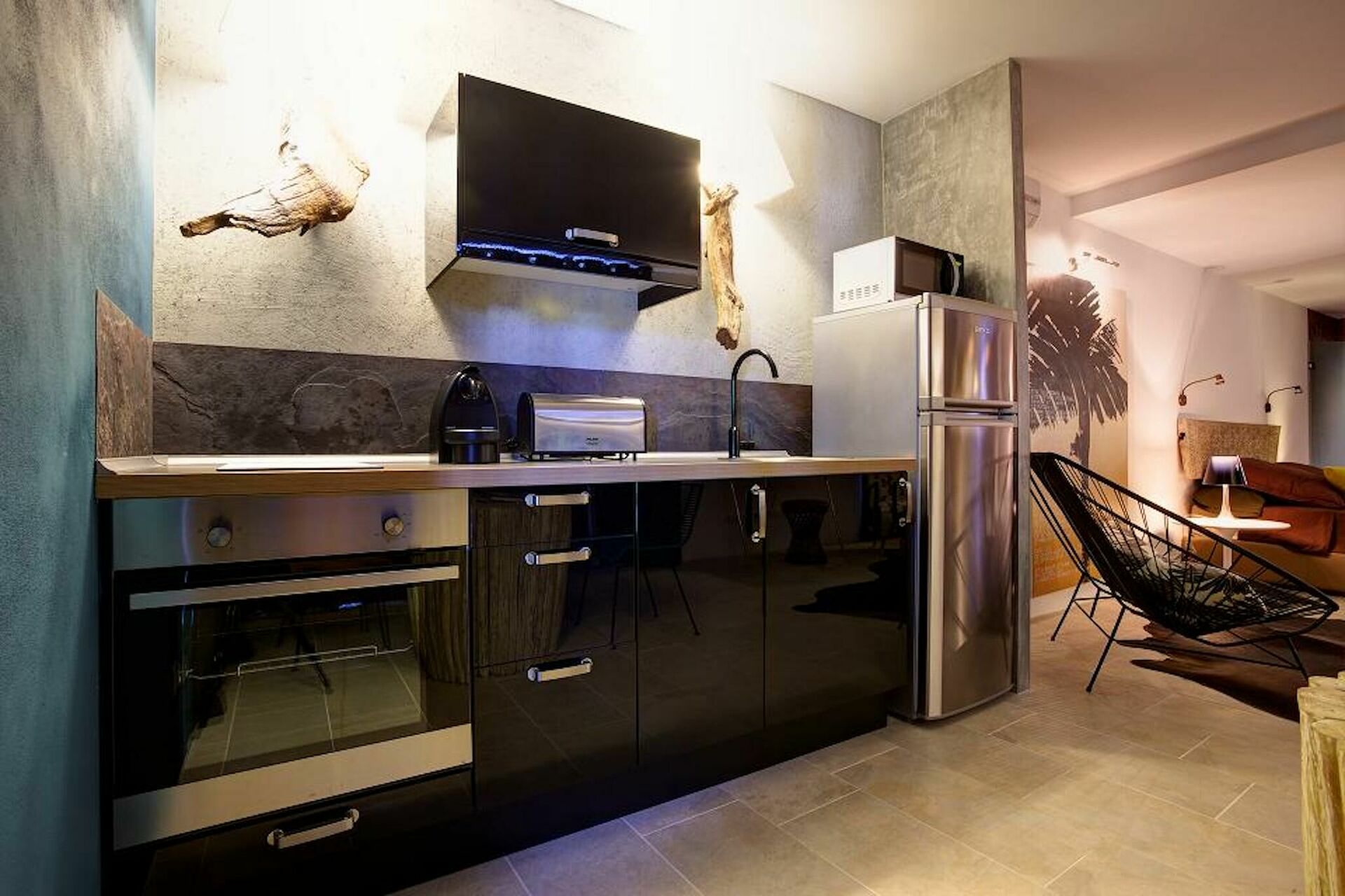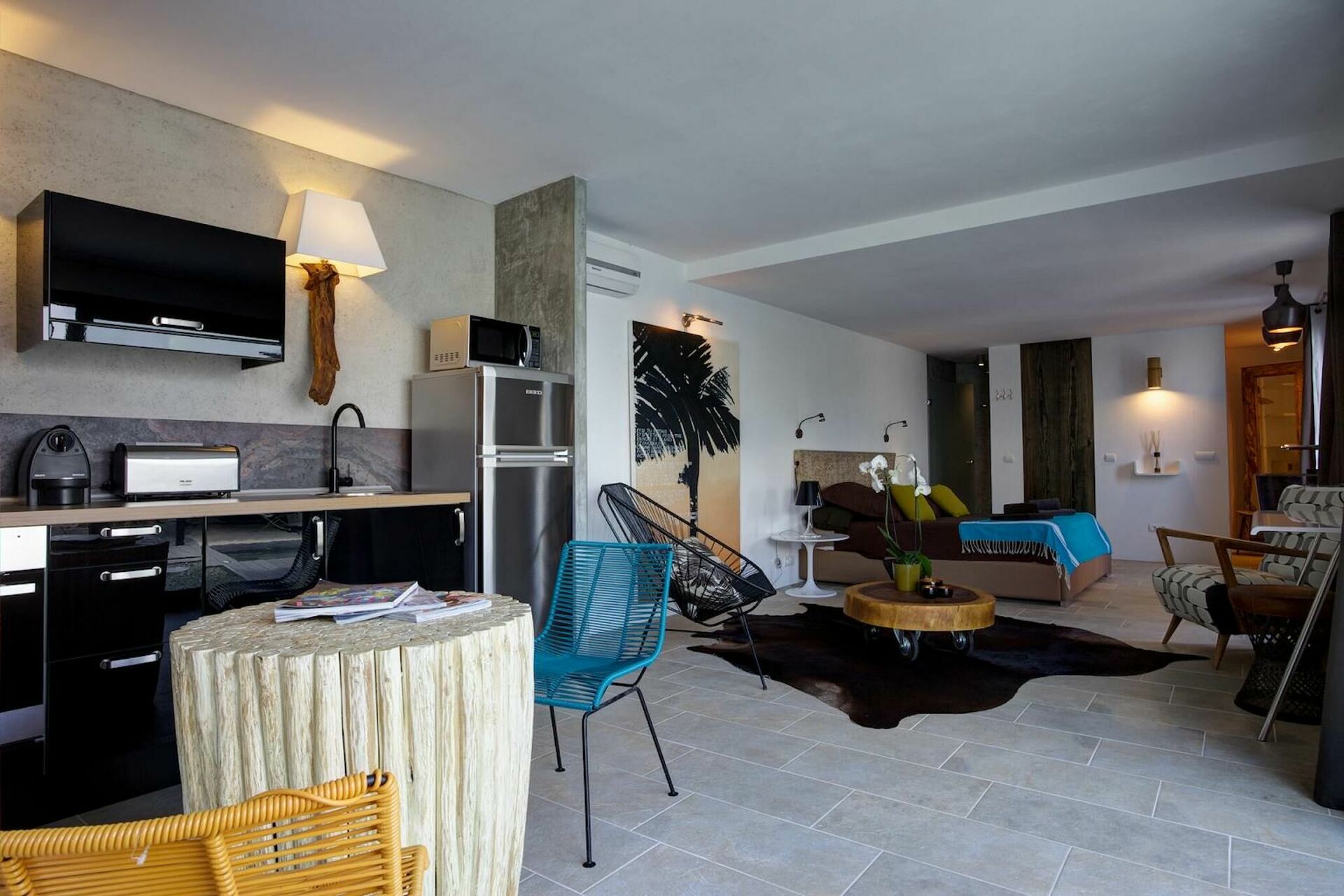 Monolocale di 50 m2 con cucina e zona pranzo, letto matrimoniale king size, bagno privato con vasca e doccia.